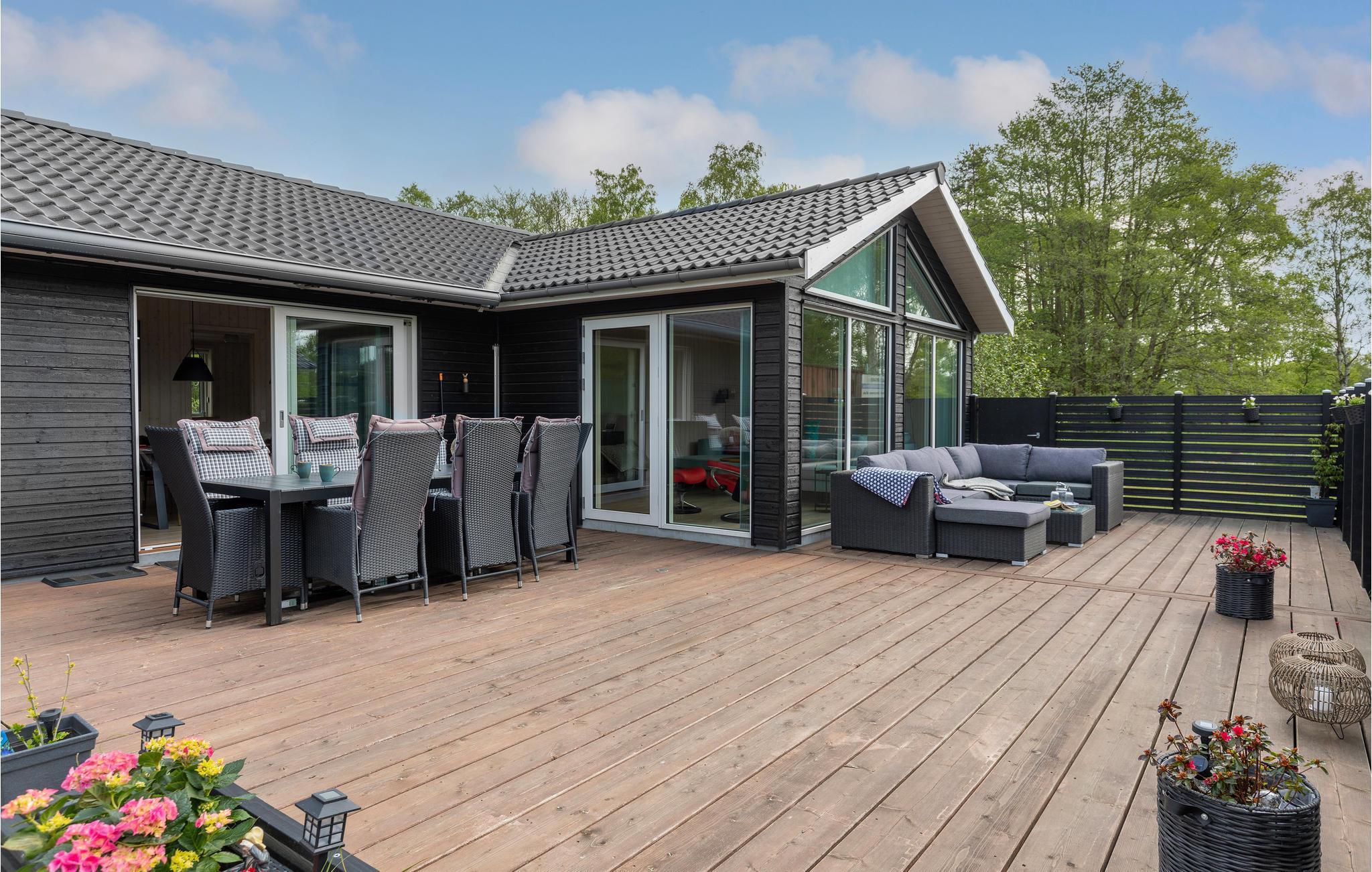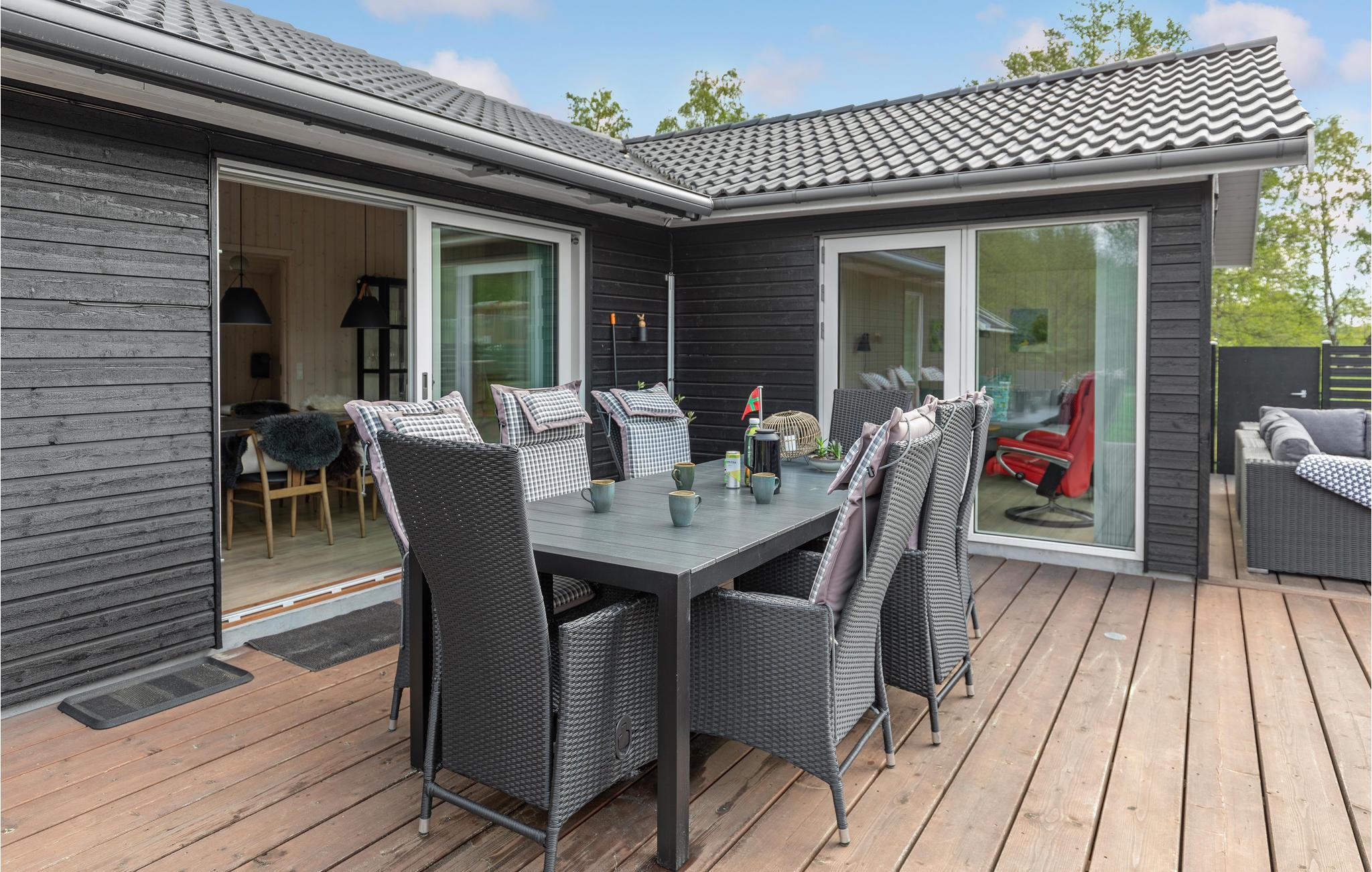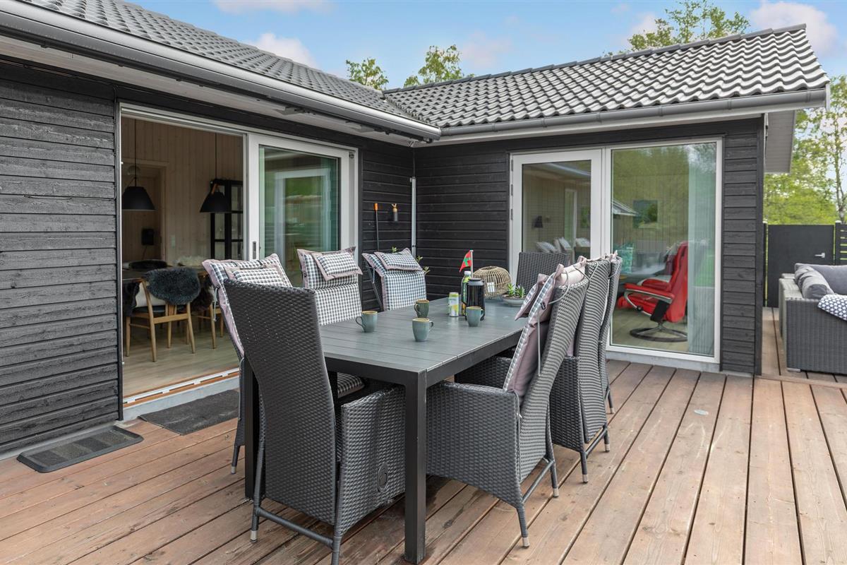 Op een idyllische locatie en op slechts een korte wandeling van het strand wacht dit door bomen omgeven vakantiehuis op u. Het huiselijke en moderne interieur nodigt u uit om met uw geliefden optimaal te ontspannen. Grote panoramische ramen zorgen niet alleen voor een prachtige inval van daglicht, maar ook dat u overal in het huis optimaal van het uitzicht kunt genieten. Geniet samen van de maaltijden aan de lange eettafel met uitzicht op het buitenleven. Na een mooie dag aan zee of het verkennen van het eiland, kunt u het uzelf comfortabel maken op de ruime bank in het woongedeelte en samen spelletjes spelen of een film kijken.