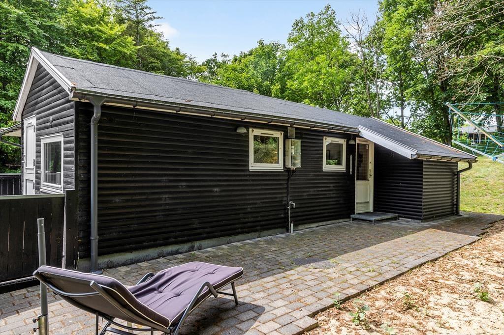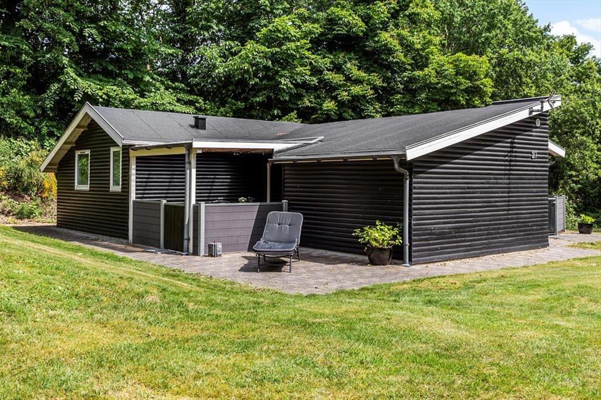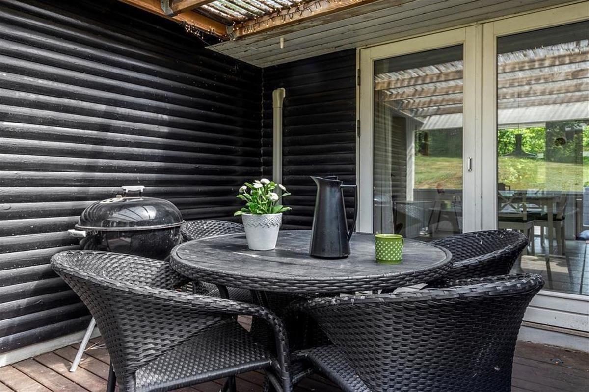 Wenn die Sonne scheint – und das tut sie über dem Limfjord zum Glück recht oft – verlagert sich das Leben nach draußen. Die Terrasse schlängelt sich fast rund ums ganze Haus, sodass du je nach Tageszeit und Laune immer ein schönes Plätzchen in der Sonne oder im Schatten findest. Der überdachte Teil der Terrasse lädt zu langen Abenden mit Grill und gutem Wein ein, während der übrige Außenbereich ideal zum Entspannen auf der Sonnenliege mit einem guten Buch ist. Hier ist Platz für Mensch und Tier – und um den Alltag ganz hinter sich zu lassen. Und wenn die Dunkelheit hereinbricht, kannst du dem Rauschen der Wellen in der Ferne lauschen und die besondere Ruhe spüren, die nur ein Ferienhaus in Wassernähe schenken kann.
