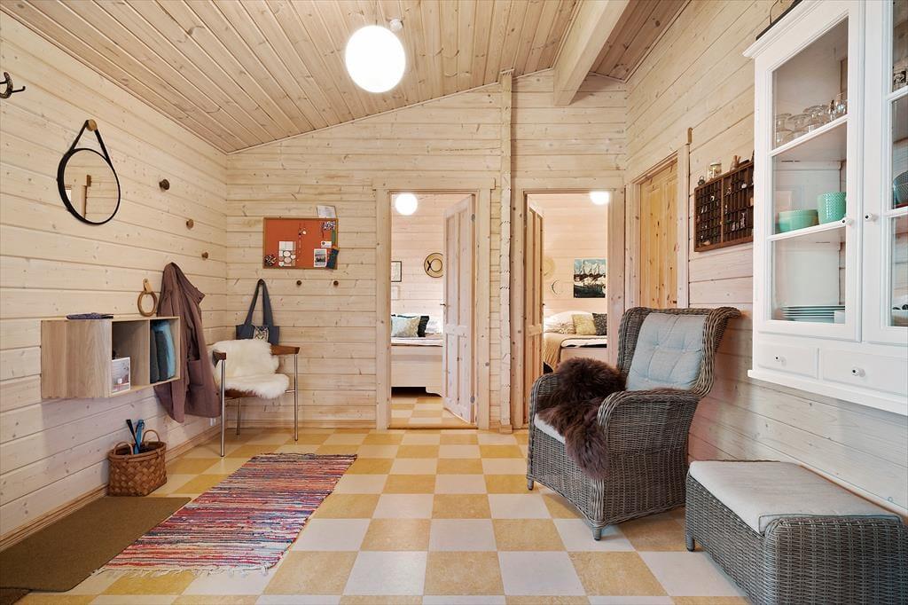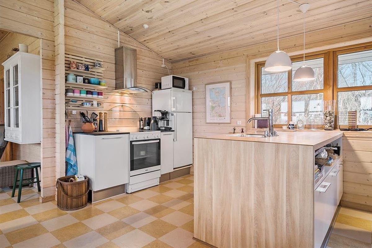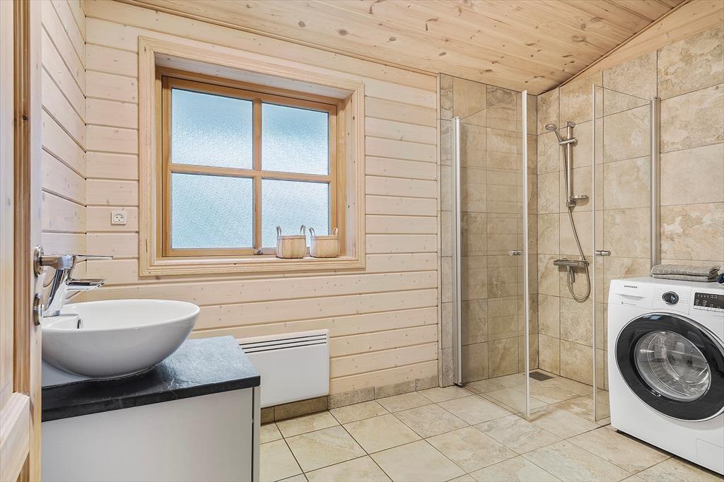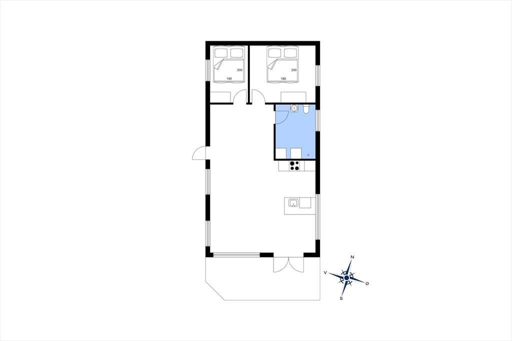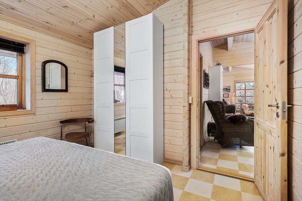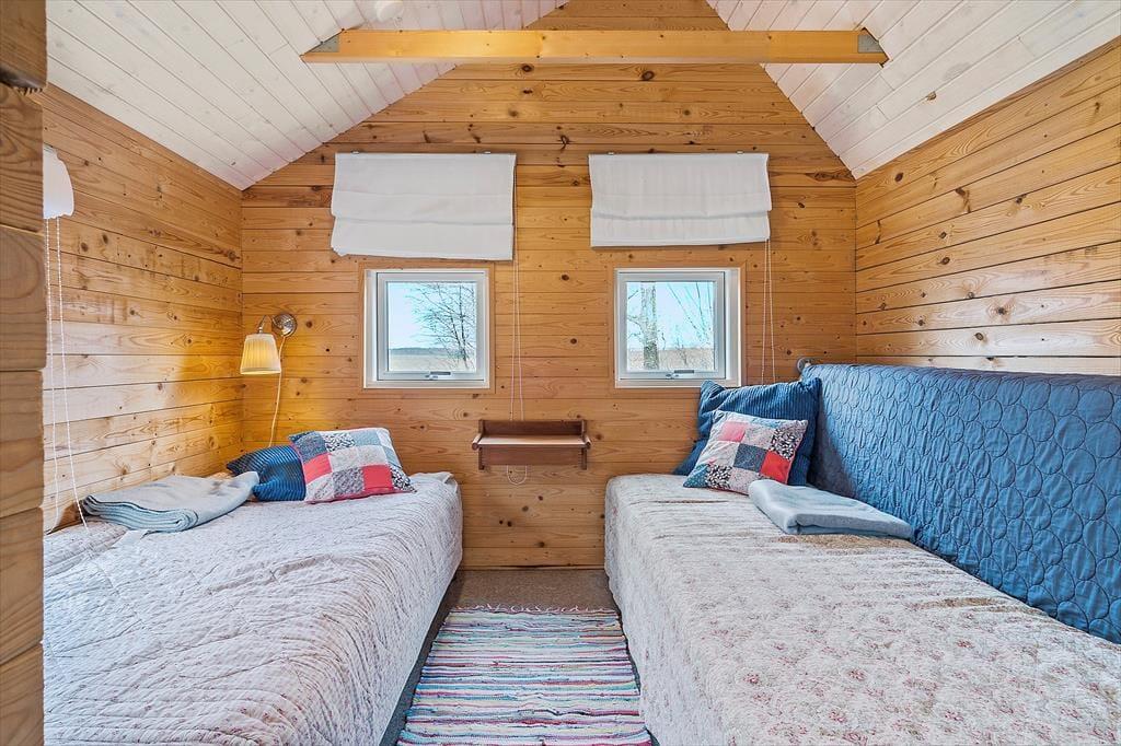 Obwohl es sich bei diesem Urlaubsdomizil um ein Ferienhaus aus dem Jahr 2014 und somit um ein vergleichsweise neues Objekt handelt, erwartet Sie hier ein Maximum an guter, echt dänischer Ferienhaustradition. Das Haus begrüßt Sie in bester klassischer Manier mit hohen Decken, hellen Holzwänden und reizvollen Sprossenfenstern. Die offene Küche und der karierte Bodenbelag verleihen den Räumlichkeiten einen modernen Touch. Die Küche ist in den Wohnraum integriert, in dem eine Wärmepumpe, ein Flachbild-TV und eine gemütliche Möblierung zu erholsamen und behaglichen Stunden einladen. Die beiden Schlafräume begrüßen Sie mit jeweils einem Doppelbett. Beim Badezimmer handelt es sich um einen großen, stilvollen Raum mit einer verglasten Duschnische. Praktischerweise stehen Ihnen im Bad auch eine Waschmaschine und ein Wäschetrockner zur Verfügung, sodass Sie sich unnötig viel Reisegepäck ersparen können. Ein Nebengebäude ist ebenfalls vorhanden. Dieses beinhaltet zwei Einzelbetten. Somit verbringen bis zu sechs Personen hier richtig schöne und erholsame Urlaubstage.