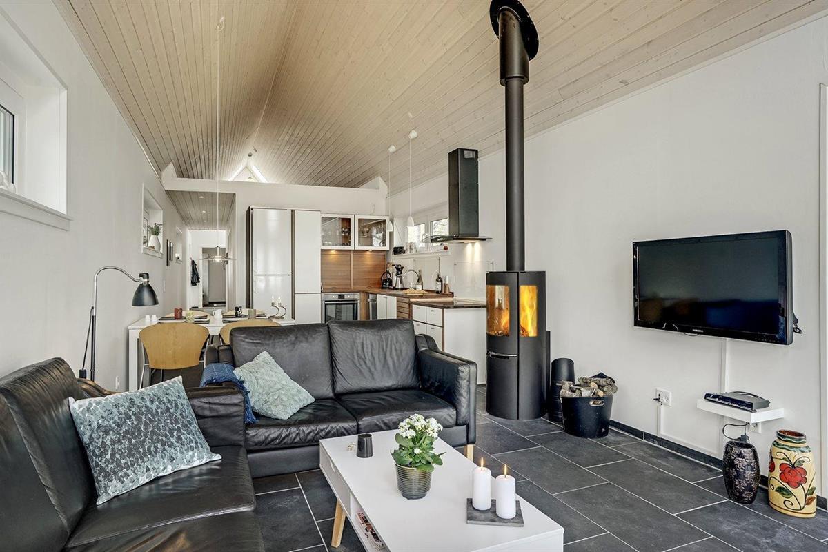 De vakantiewoning is gelegen op een 2000 m² groot natuural grond. Afstand tot de fjord 80 m. Dichtstbijzijnde winkel 4000 m. Bij de vakantiewoning hoort 25 m² terras. Afstand tot speelplaats 50 m.Vuurplaats. Parkeerplaats bij het huis.