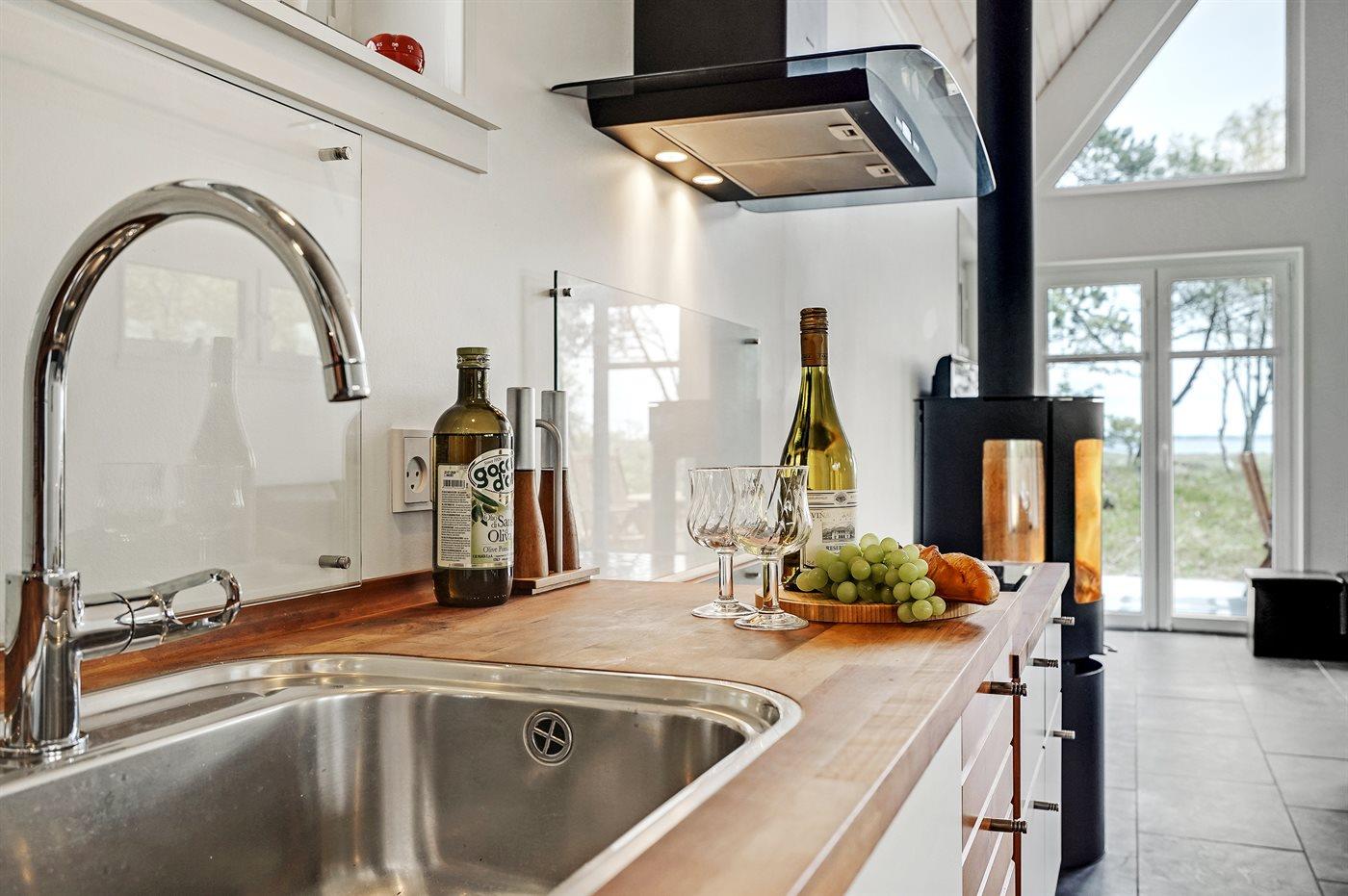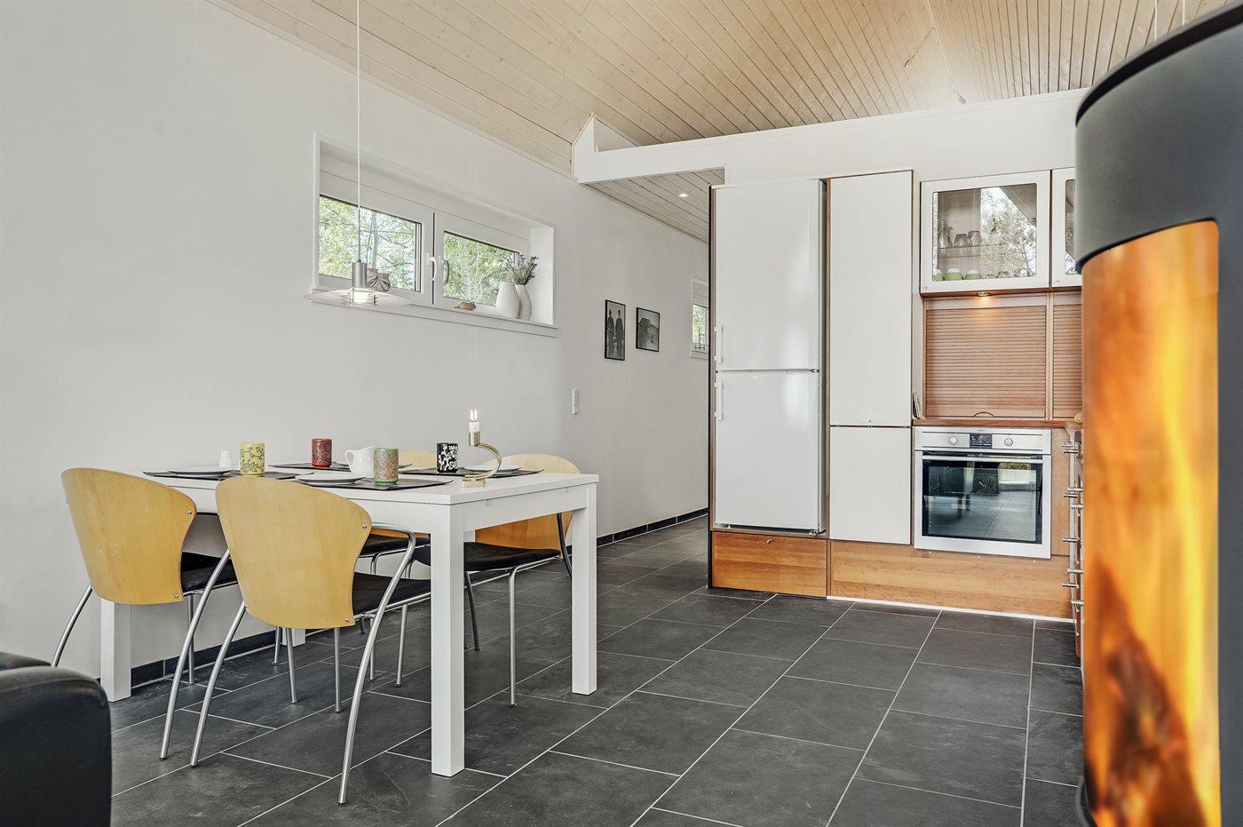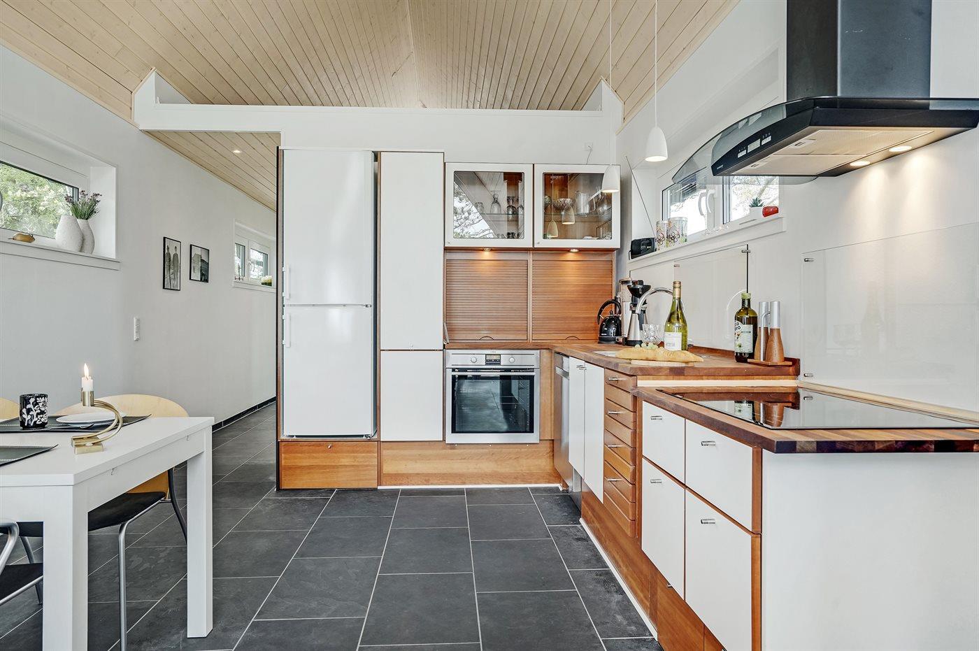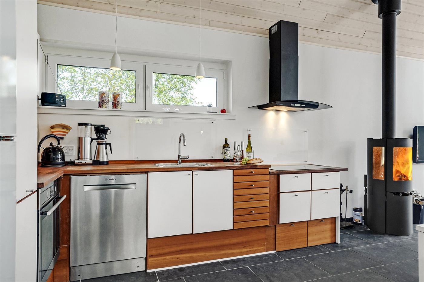 De keuken is uitgerust met koelkast Er is 4 inductiekookplaten, heteluchtoven en vaatwasser.