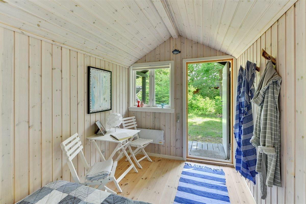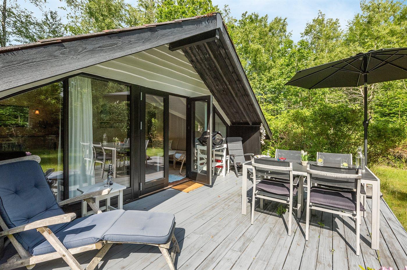 De vakantiewoning is gelegen op een 1650 m² groot natuural grond. Afstand tot de fjord 200 m. Dichtstbijzijnde winkel 5000 m. Er is een golfbaan op een afstand van 25000 m. Bij de vakantiewoning hoort 24 m² terras. Barbecue. Parkeerplaats bij het huis.