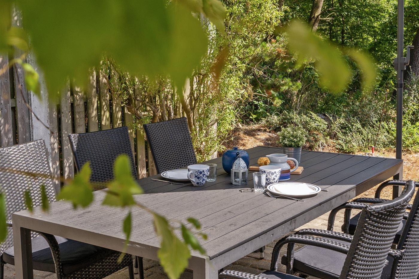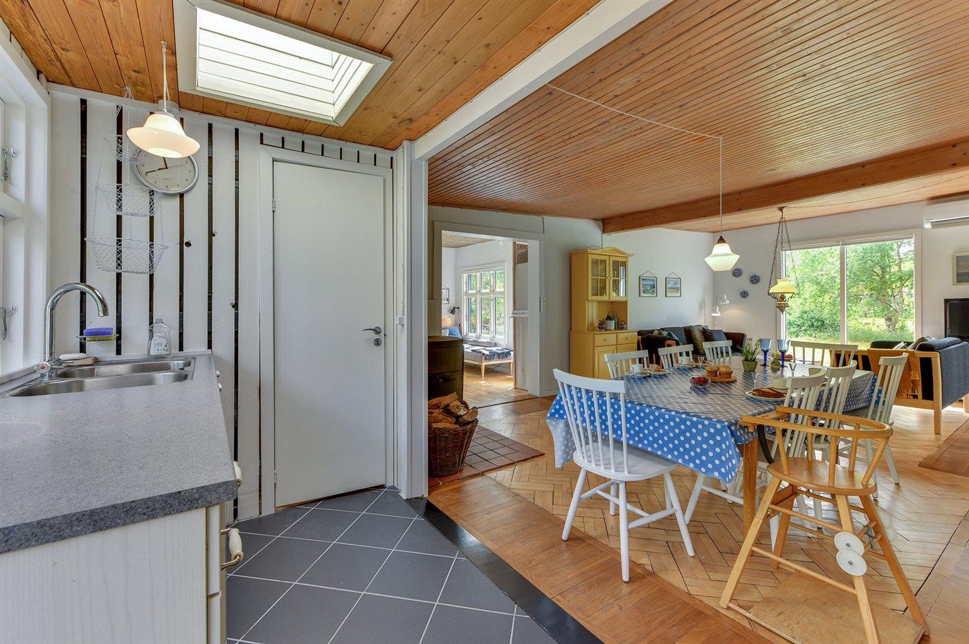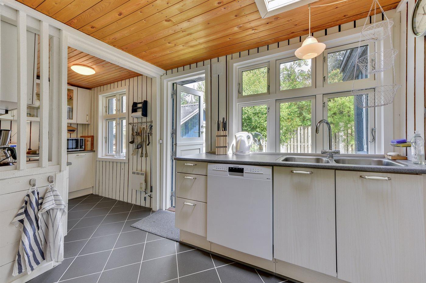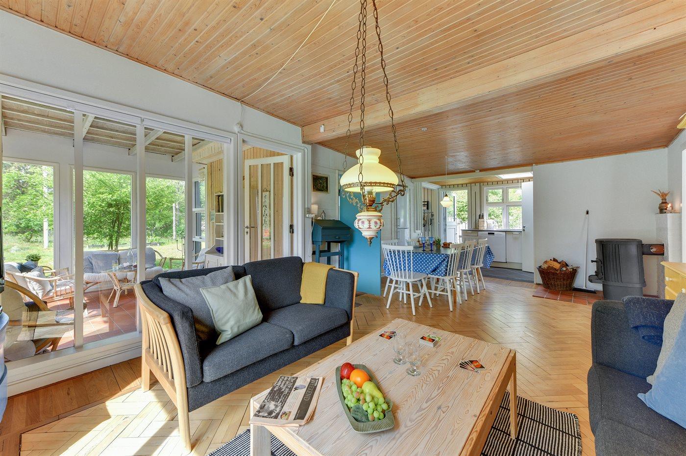 De vakantiewoning is gelegen op een 2000 m² groot natuural grond. Afstand tot de fjord 100 m. Er is een zwemsteiger in de buurt. Dichtstbijzijnde winkel 6000 m. Zonneterras. Gereedschapsruimte. Schommel. Zandbak. Barbecue.