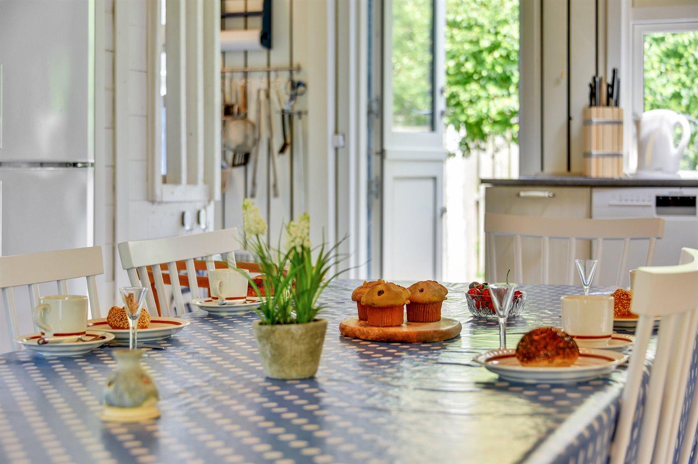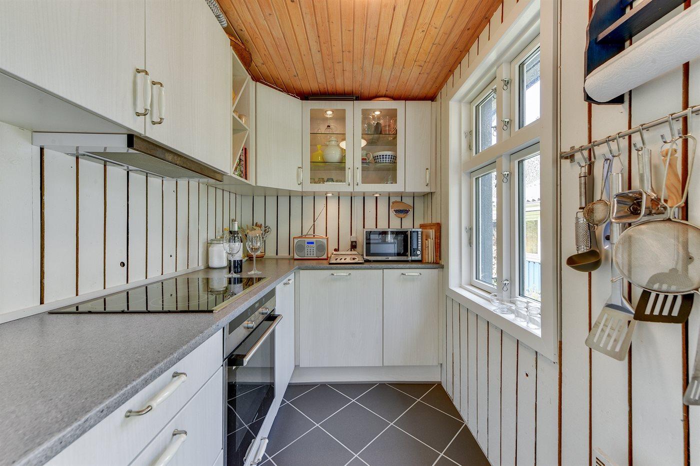 De keuken is uitgerust met koelkast Er is 4 inductiekookplaten, heteluchtoven, magnetron en vaatwasser.