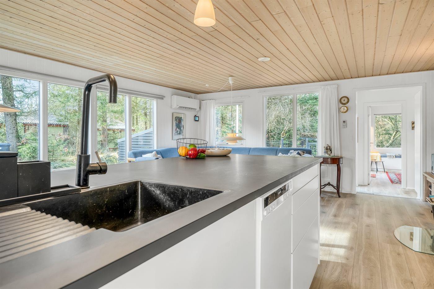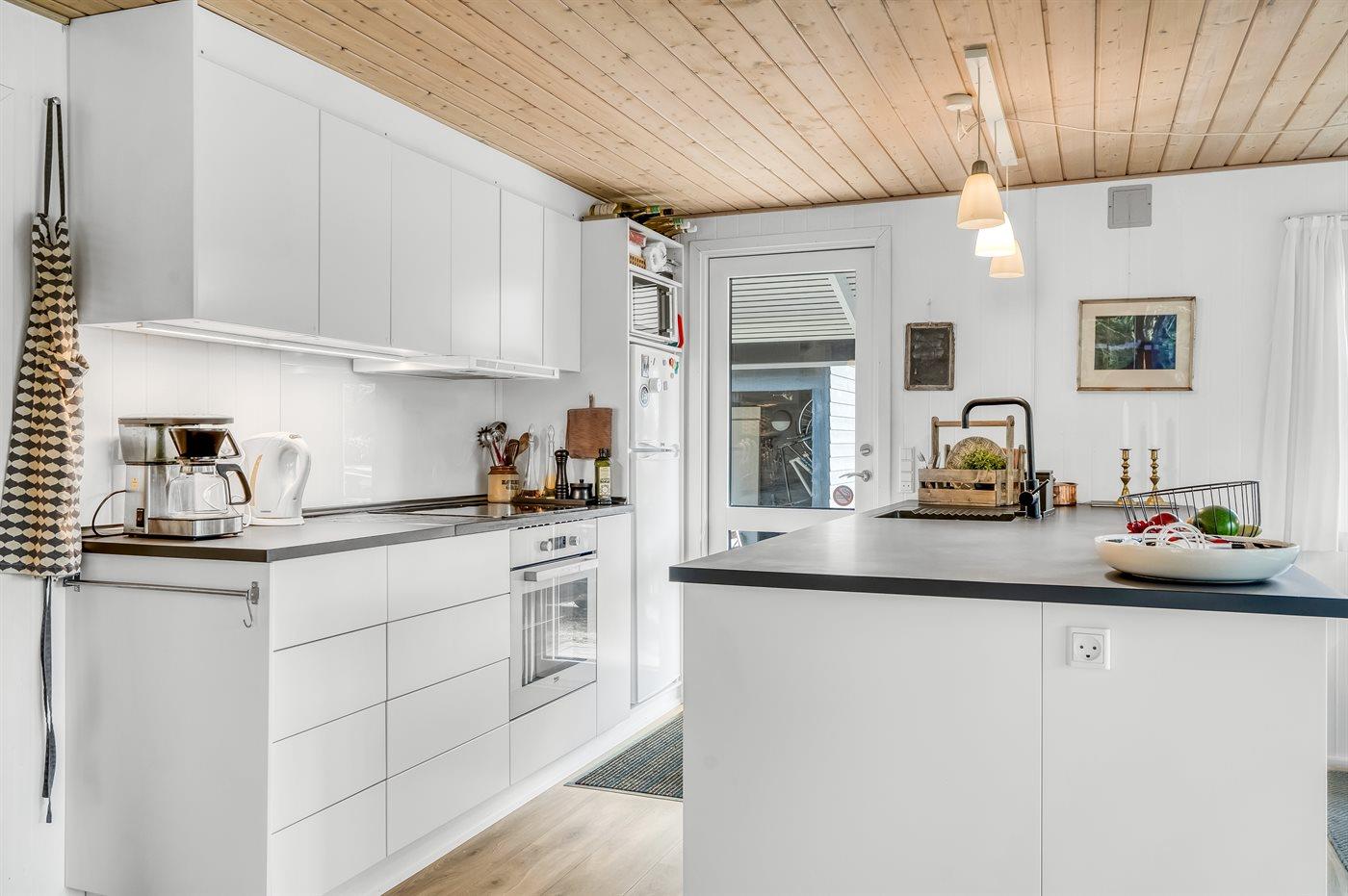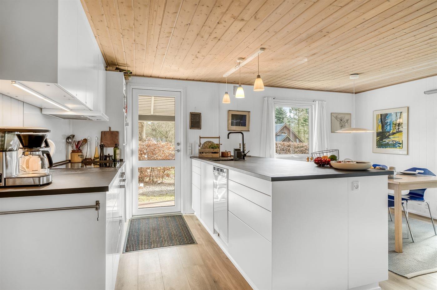 De keuken is uitgerust met koelkast Er is 4 inductiekookplaten, heteluchtoven, magnetron en vaatwasser.