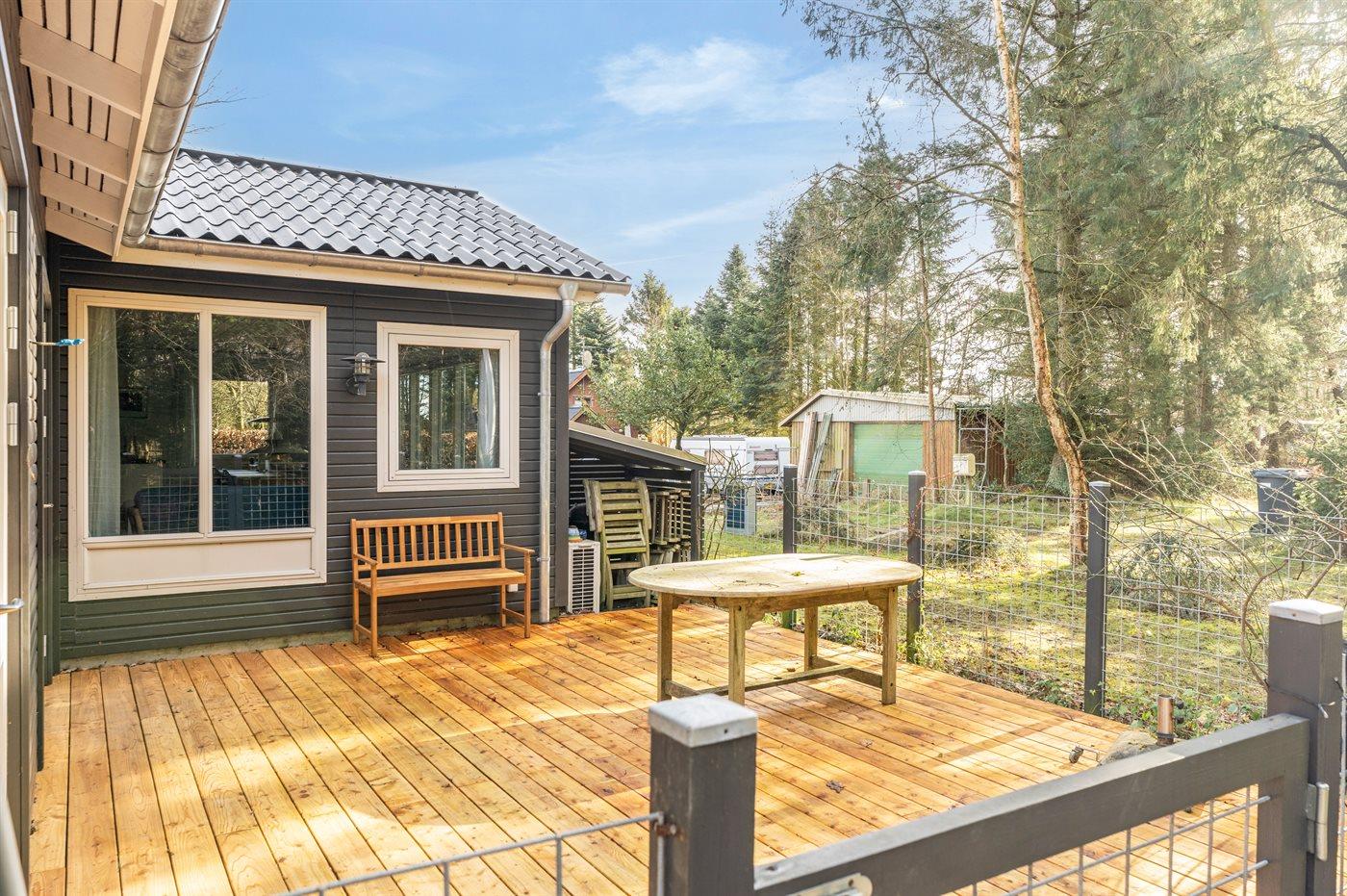 De vakantiewoning is gelegen op een 1300 m² groot natuural grond. Afstand tot de zee 36000 m. Afstand tot de fjord 250 m. Er is een zwemsteiger in de buurt. Dichtstbijzijnde winkel 5000 m. Er is een golfbaan op een afstand van 15000 m. Bij de vakantiewoning hoort 30 m² beschut terras. Schommel. Buitendouche. Barbecue. Het huis heeft een stopcontact voor het opladen van een elektrische auto. Llaadkabel moet worden meegenomen. Parkeerplaats bij het huis.