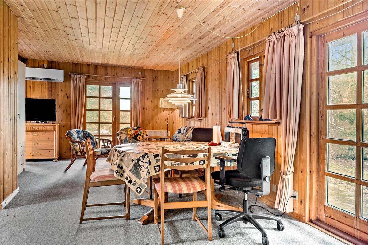 Je vakantiehuis, omgeven door hoge bomen en natuur, nodigt je uit om te genieten van een rustige en ontspannen vakantie. Het huis, gebouwd in traditionele houtbouw, straalt een warme en uitnodigende sfeer uit. Je komt meteen in vakantiestemming. Begin je dag met een familieontbijt aan de gezellige eettafel. Geniet van de rust en laat je blik door de ramen naar de uitgestrekte tuin dwalen. Binnen in het huis vind je ook een gezellige woonkamer met comfortabele zithoek en rustieke houten meubels.