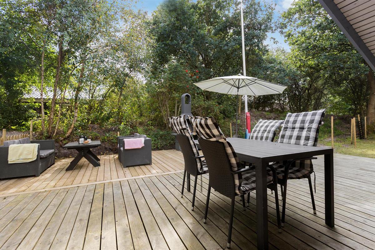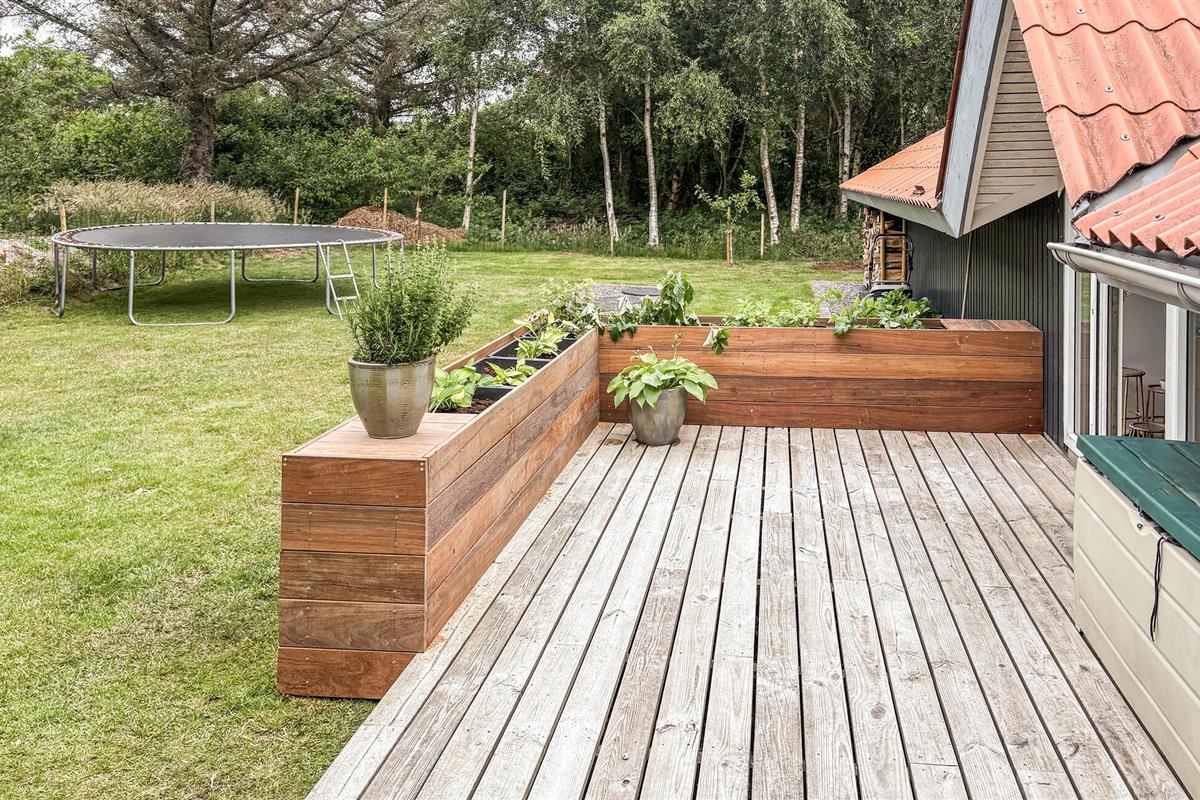 De grote tuin met speeltoestellen biedt plezier voor jong en oud. Ontspan op het terras en zie je kinderen rondrennen op het gazon of springen op de trampoline terwijl je barbecuet. Het pittoreske strand van Søndbjerg en de Limfjord liggen op loopafstand van het huis.