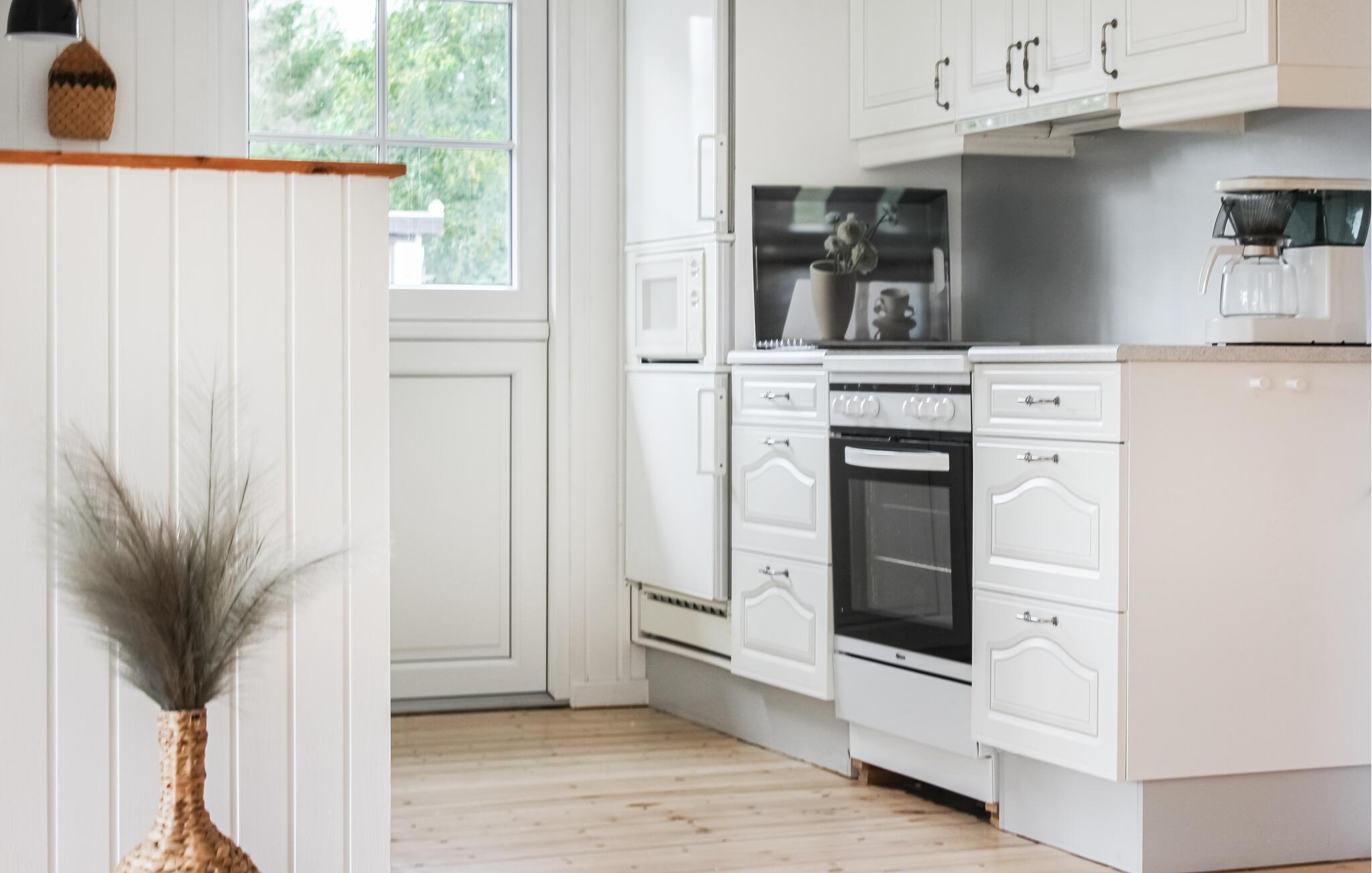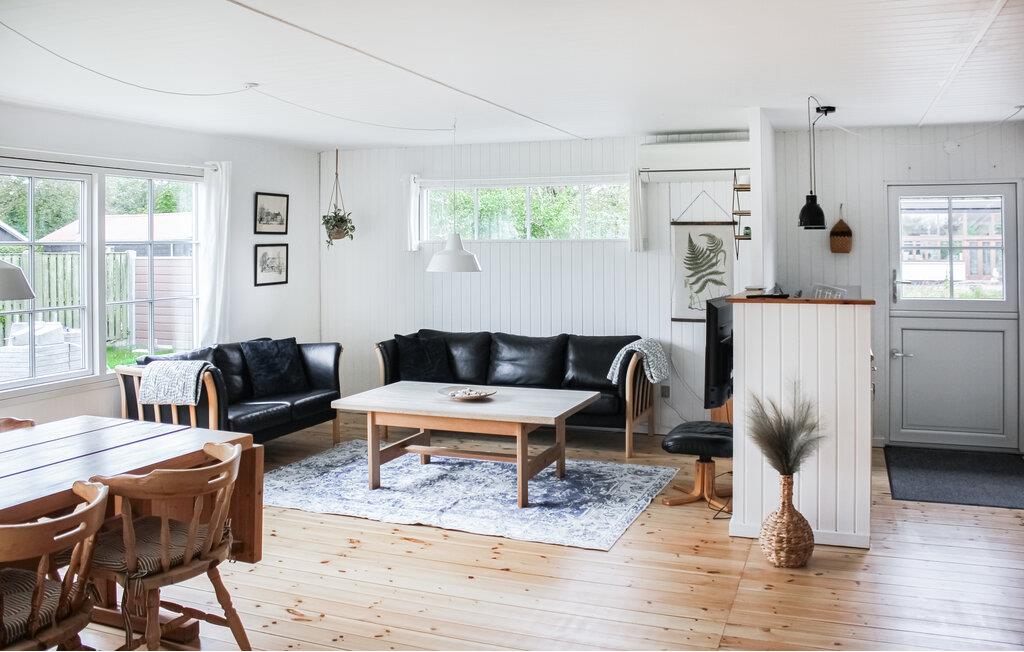 Het huis is comfortabel ingericht in een rustig kleurenschema in een klassieke Scandinavische stijl. De ramen in de woonkamer laten veel licht binnen, zodat je kunt genieten van het uitzicht op het strand en de korte afstand tot het water. Na uw excursies kunt u gezellig op de bank gaan zitten met een goed boek en de activiteiten voor de volgende paar dagen plannen.