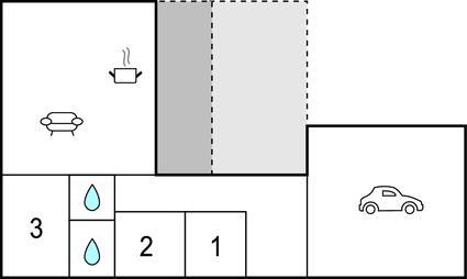 Badkamer (nr. 1) - Toilet: warm en koud water. Douche
