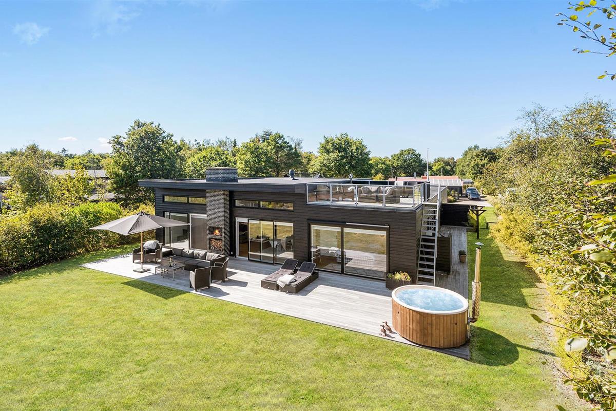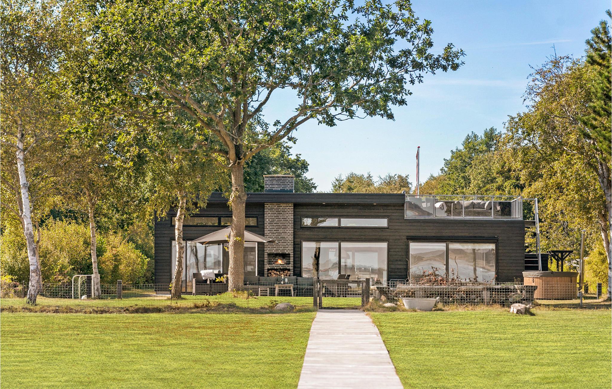 Luxe vakantiehuis aan het water met privéstrand, dakterras en hot tub voor een ontspannen verblijf.