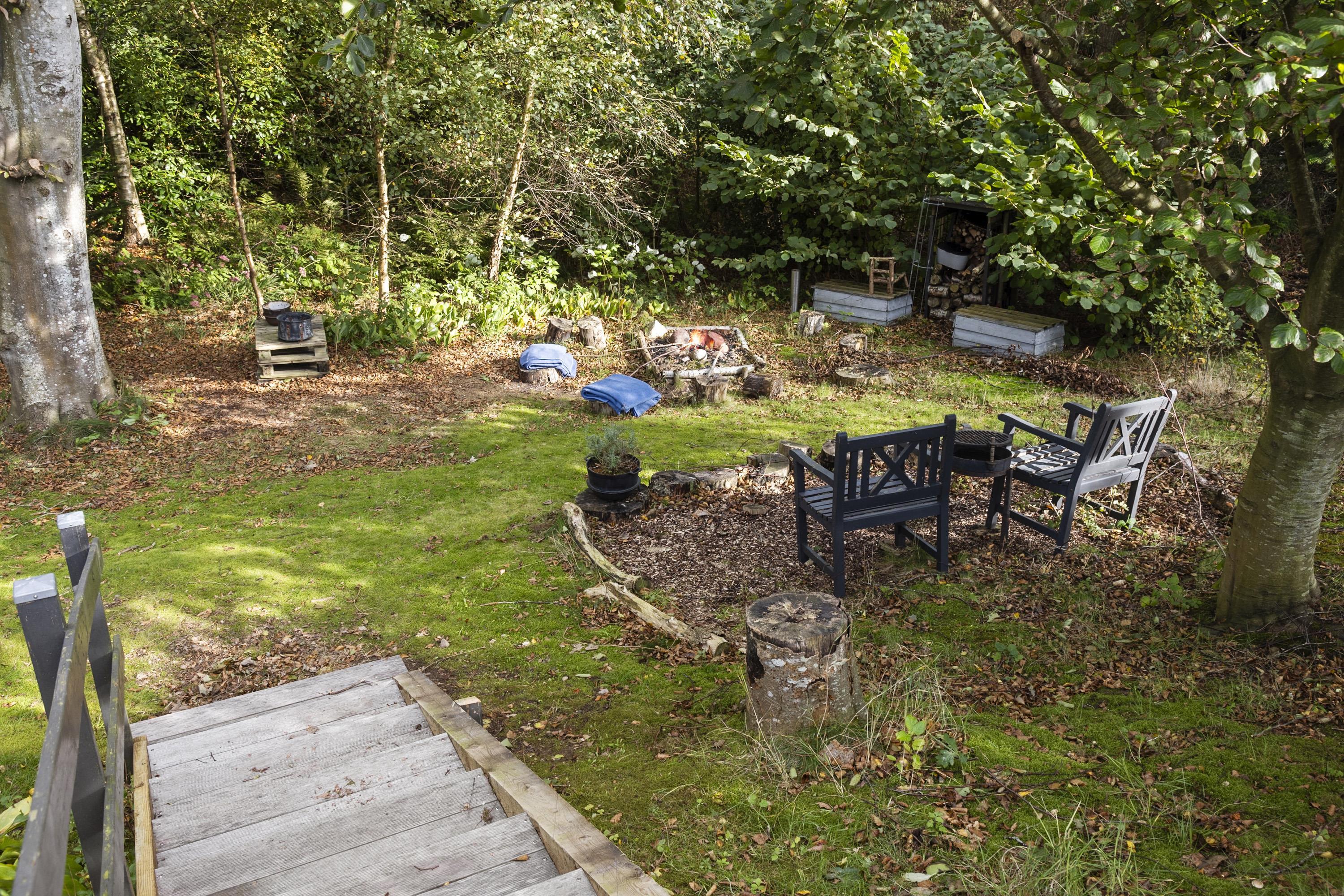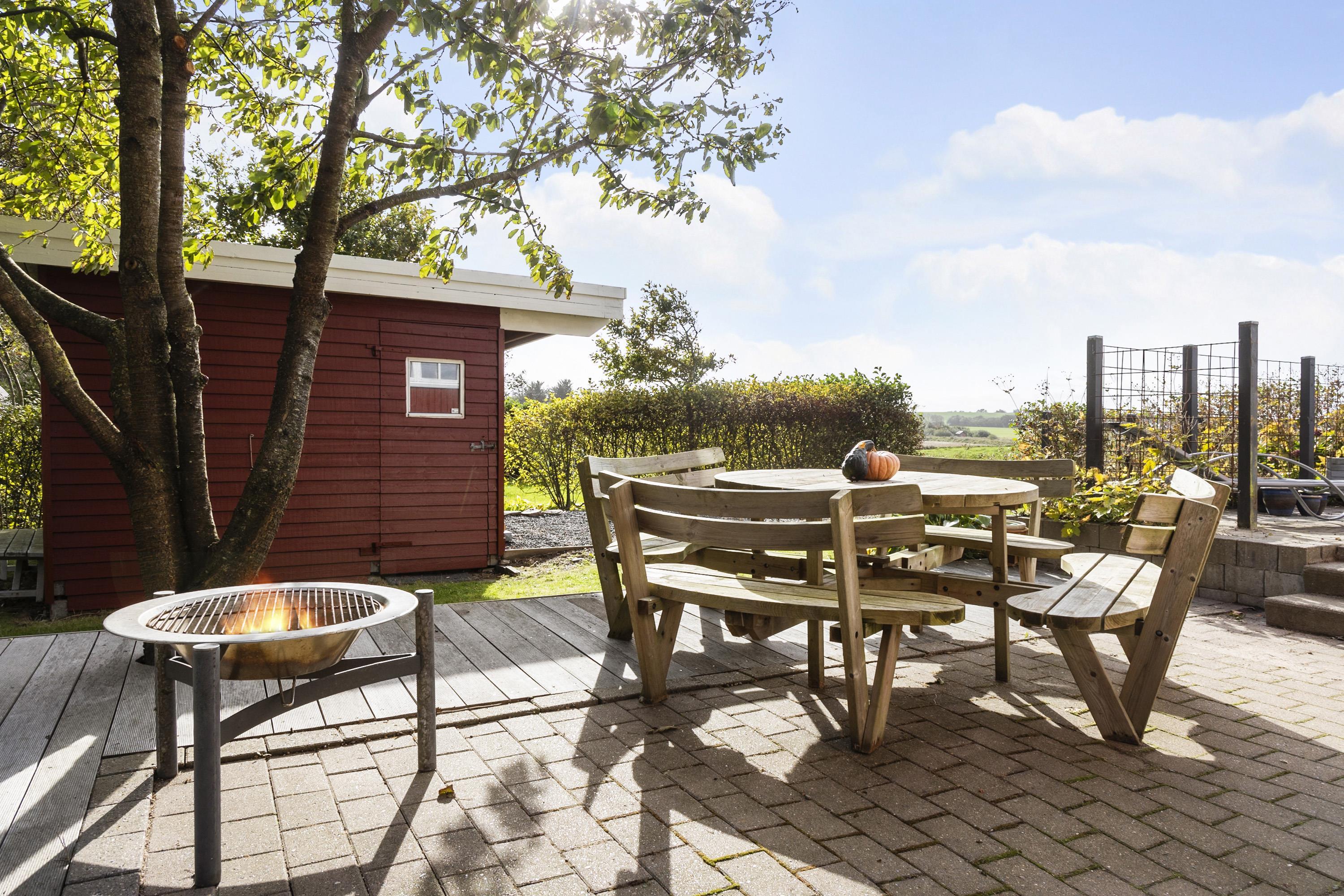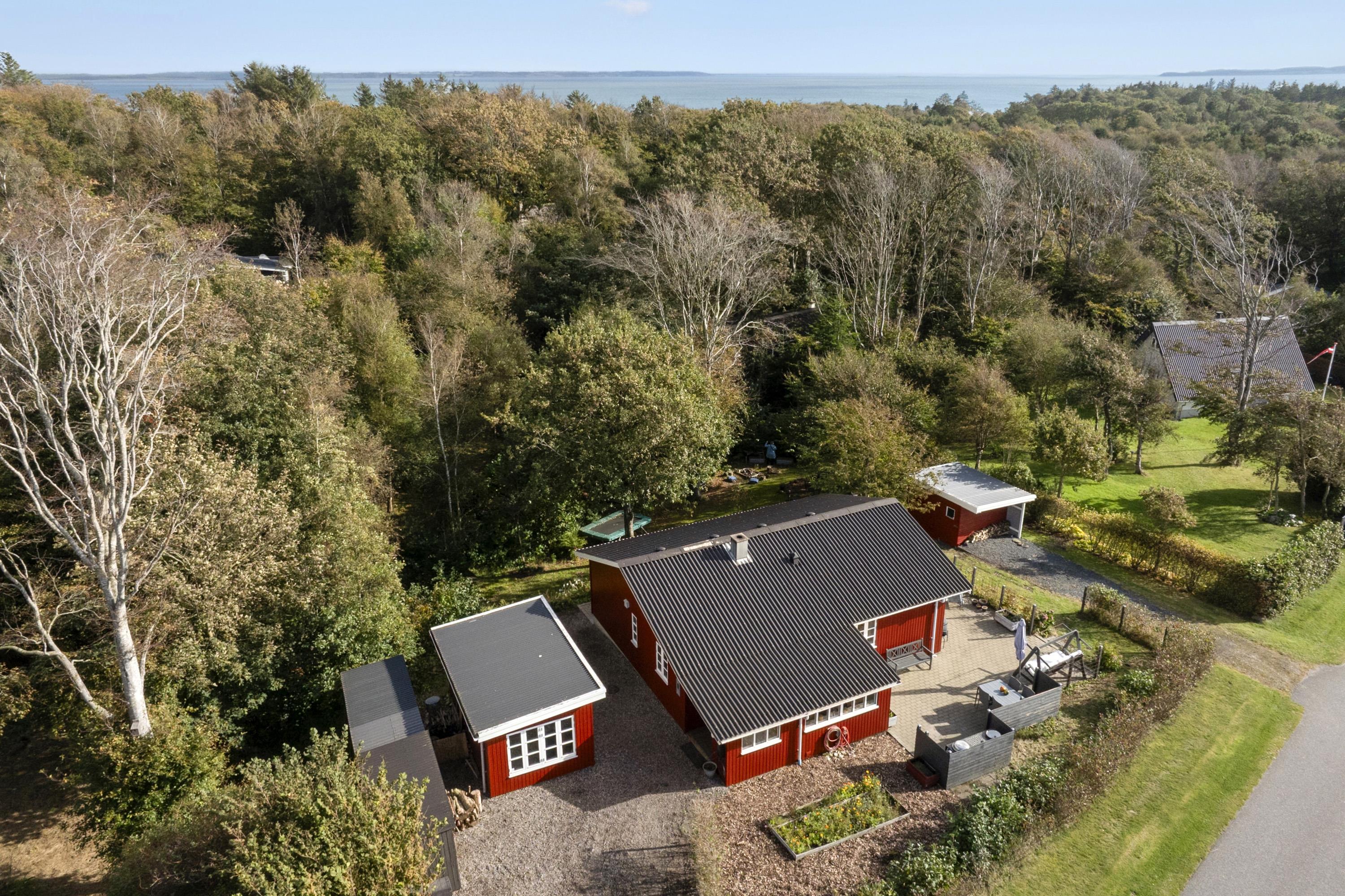 The house is surrounded by terraces with morning sun, midday sun and evening sun. There is an outdoor kitchen and barbecue. At the bonfire place in the small forest garden you can make, for example, marshmallows, popcorn or snow bread. For the active, there is a trampoline in the garden, and if you go down to the beach, there is a sensory swing and a football field.