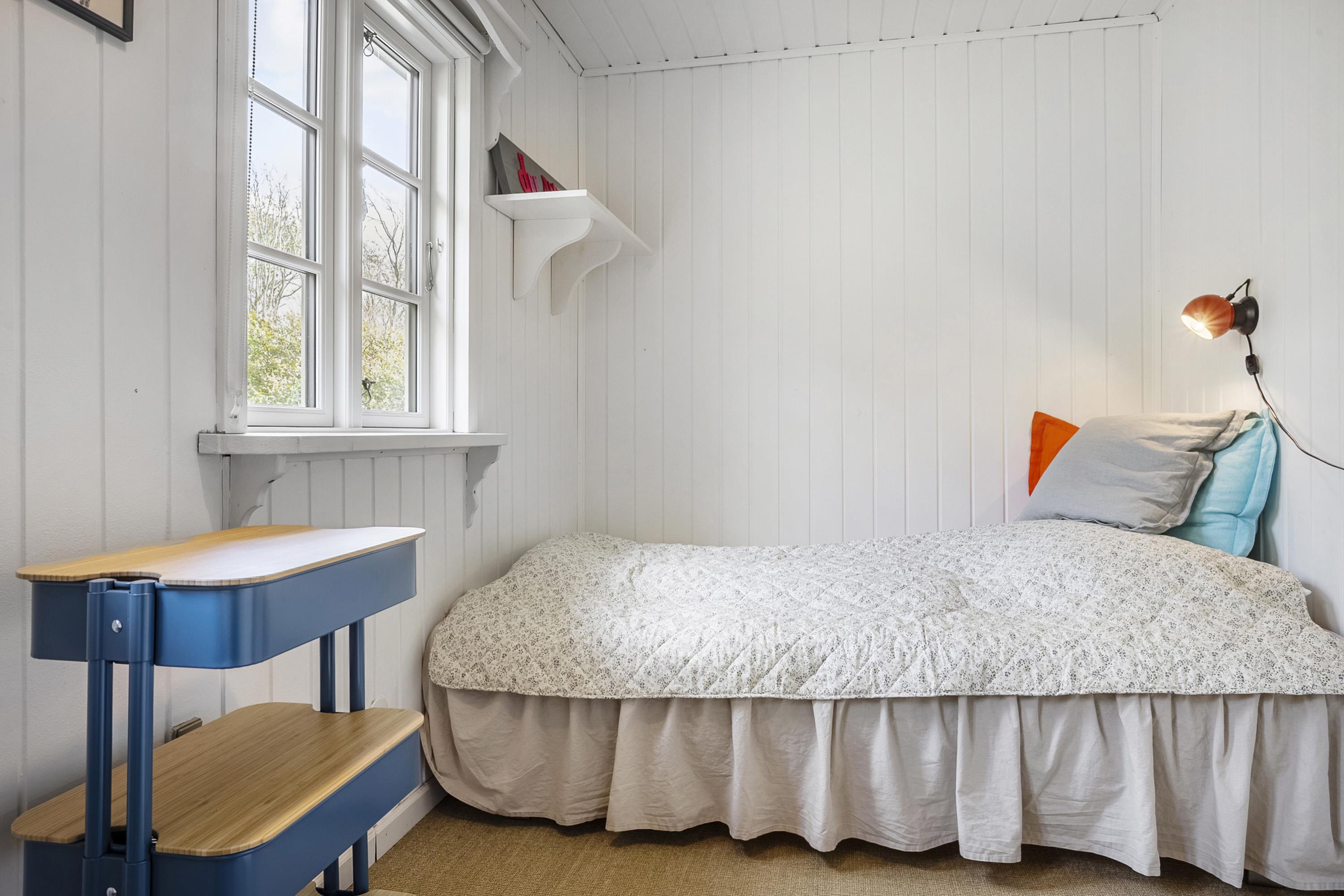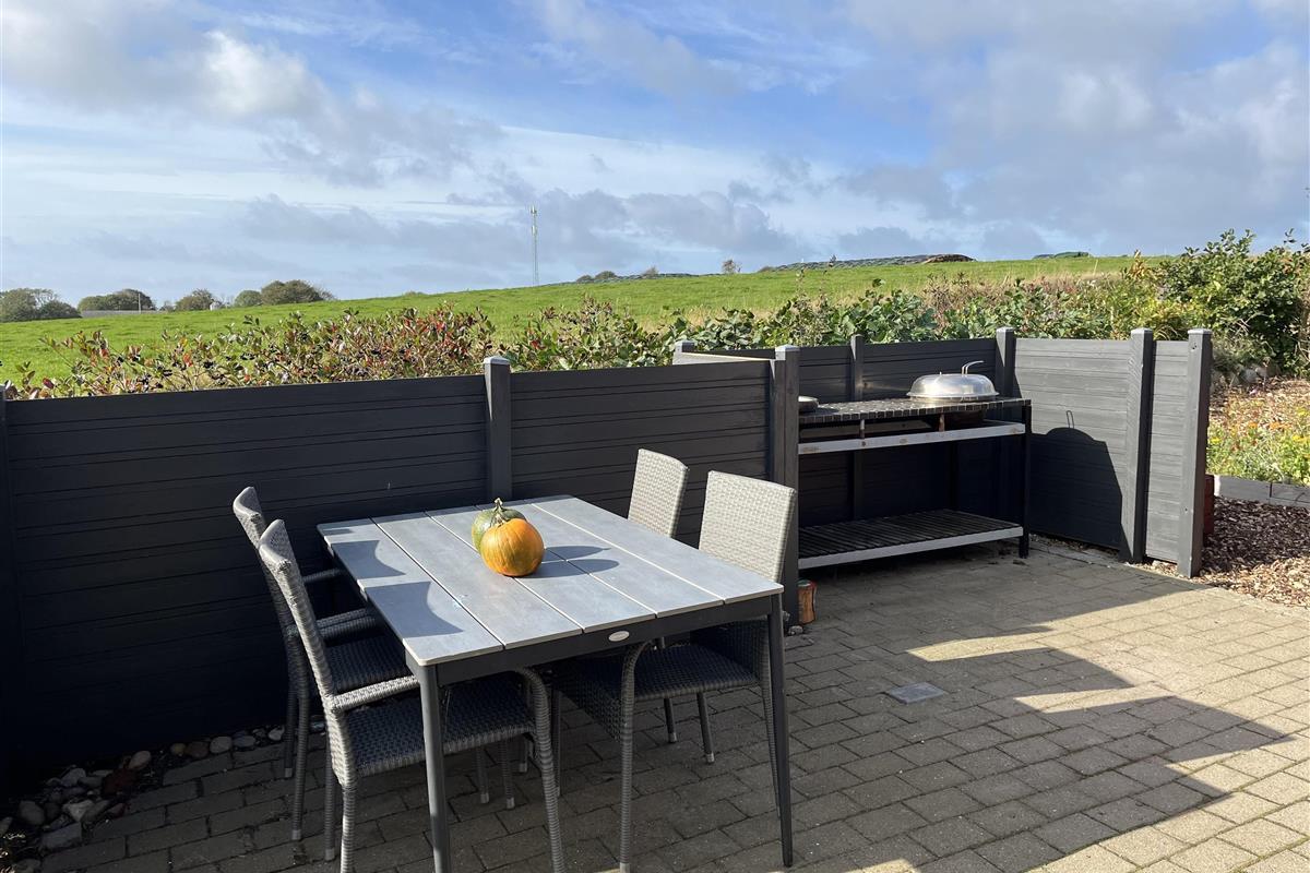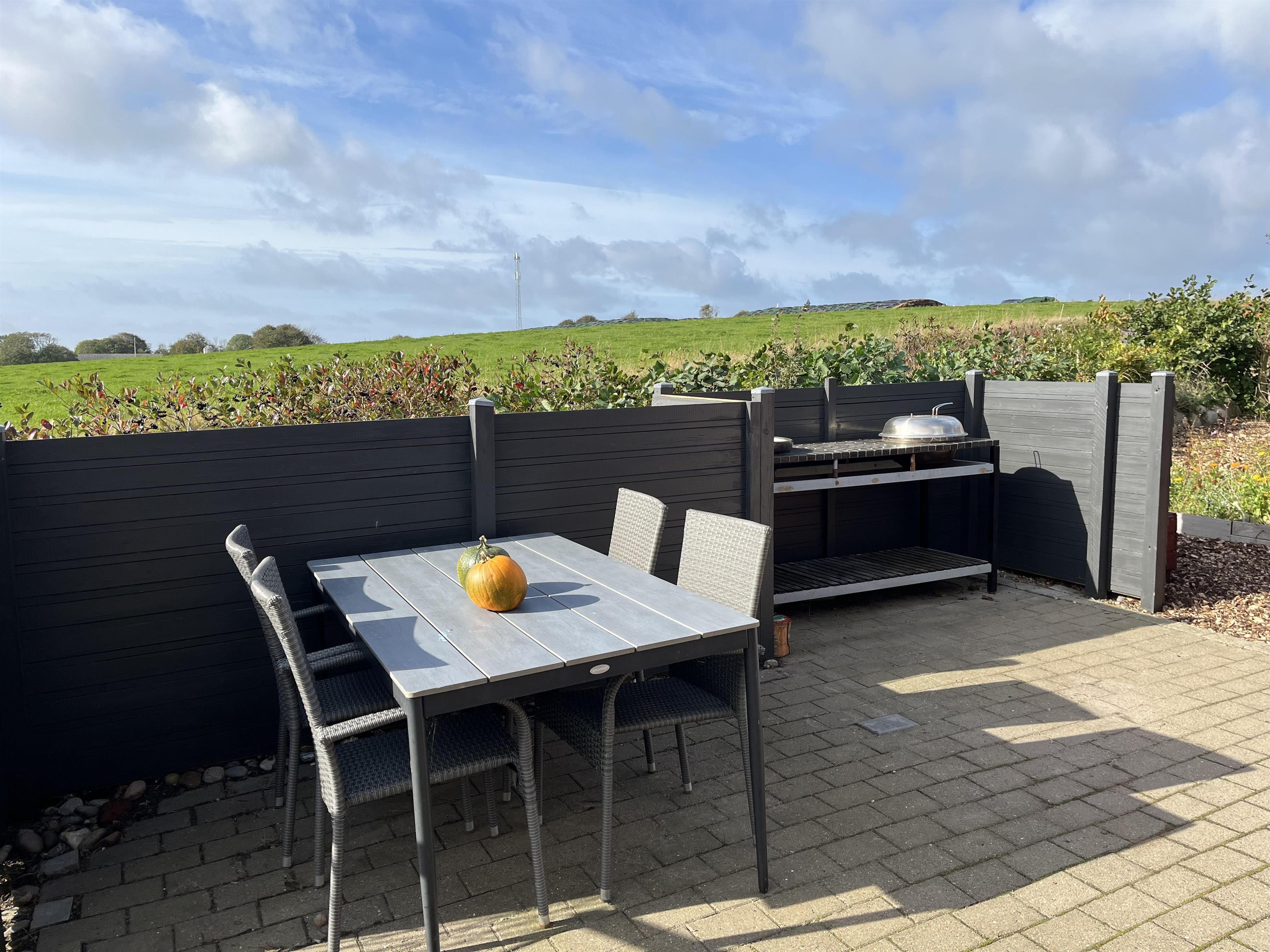 This beautiful holiday home at Søndbjerg Strand on Thyholm is located on a large plot of 1320 square meters, with terraces around the house and a cozy little secluded forest garden with a large playground. From the house, through the fine lattice windows, there is a view of fields, where hares and deer are often seen. The house is located on a quiet road without traffic noise.