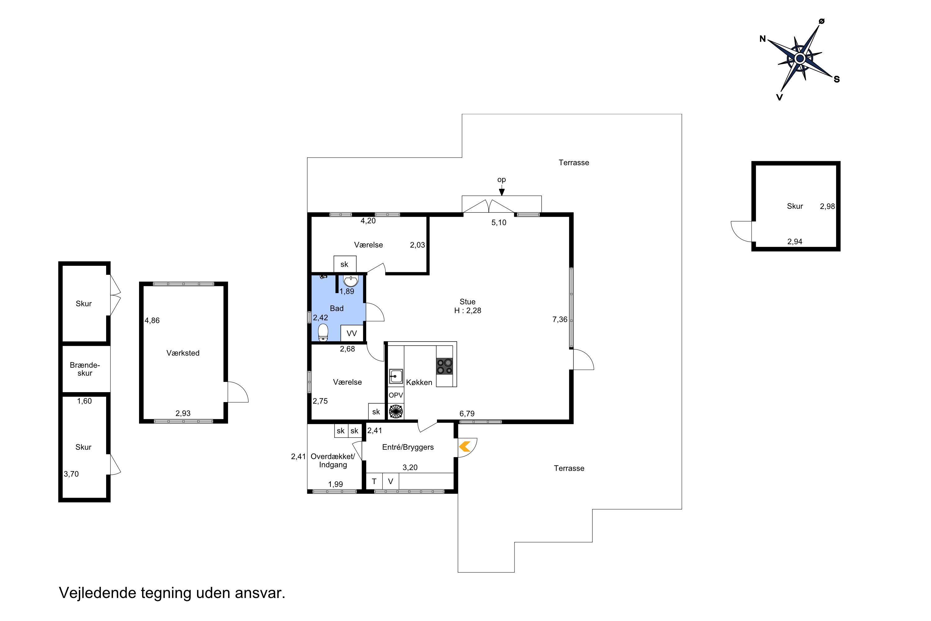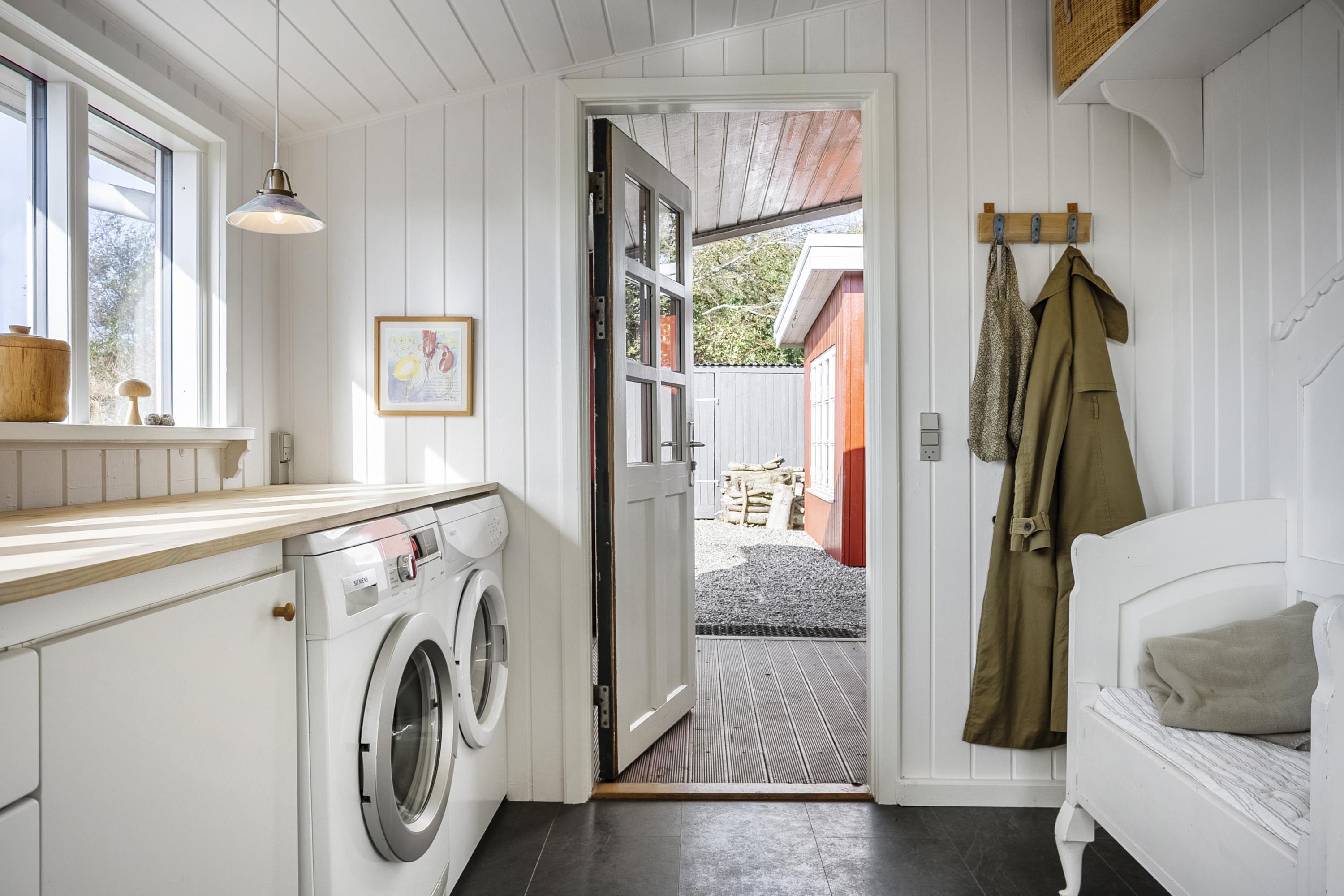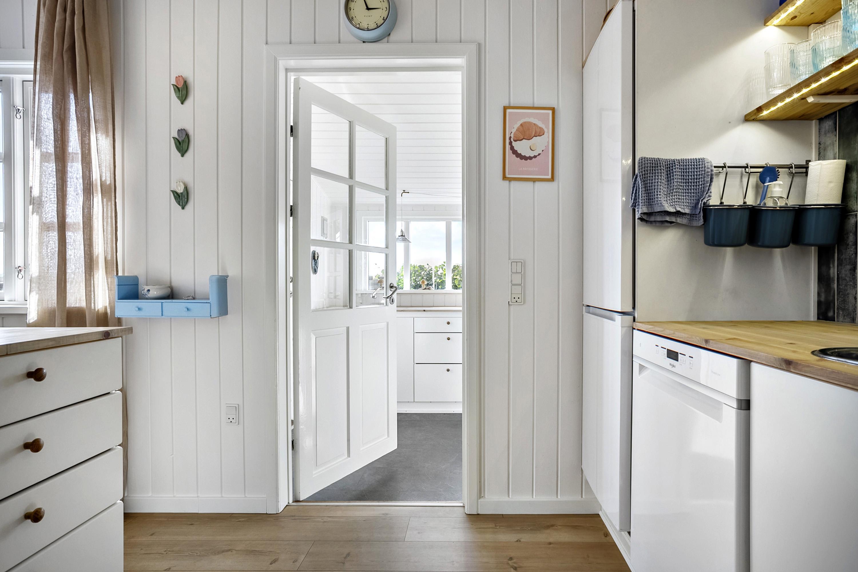 The house has undergone a renovation of, among other things, the kitchen and bathroom in 2024, and there is a bright and cozy interior with several exits to the garden. There is a large entrance hall with space for, for example, a stroller or dog basket, and here you can wash and dry clothes. The kitchen is well equipped with all the necessary facilities. The bathroom is spacious with good ventilation options. In the living room there is both an air-to-air heat pump, that can function as air conditioning on hot days, and a newer wood-burning stove that is easy to operate and provides a cozy atmosphere on cool days/evenings. There are red alarms in the house.