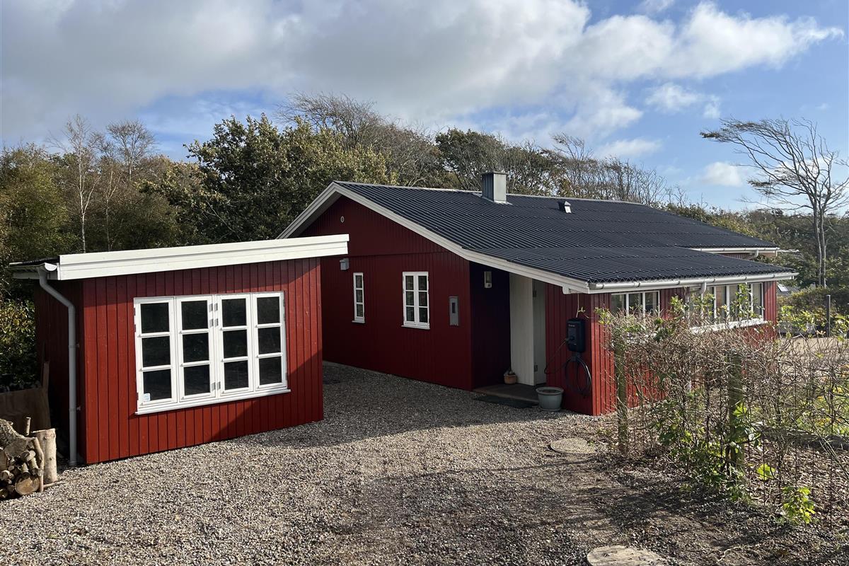 The area offers several walking routes, including walking up the 15-meter-high slope called Dødbjerget, from where there is a beautiful view of the fjord. You can see Jegind and Ven from the beach and at low tide you can walk along the beach to Tambohus, where there is a playground, mini golf, ice cream parlor and restaurant. Doverodde with the National Museum of Art, Lemvig, Agger and Struer are a 20-25 minute drive away. In Hvidbjerg- smår 10 minutes drive from there - there is a train station, a hospital, a large supermarket, a pizzeria and an ice cream parlor, etc.