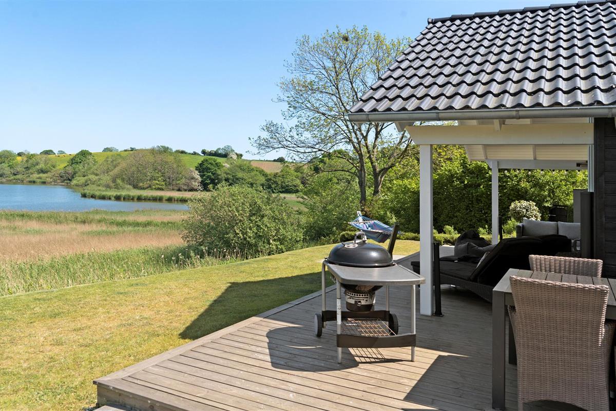 Charmant vakantiehuis aan het water bij Sønderballe met prachtig uitzicht en privé tuin voor ontspanning.
