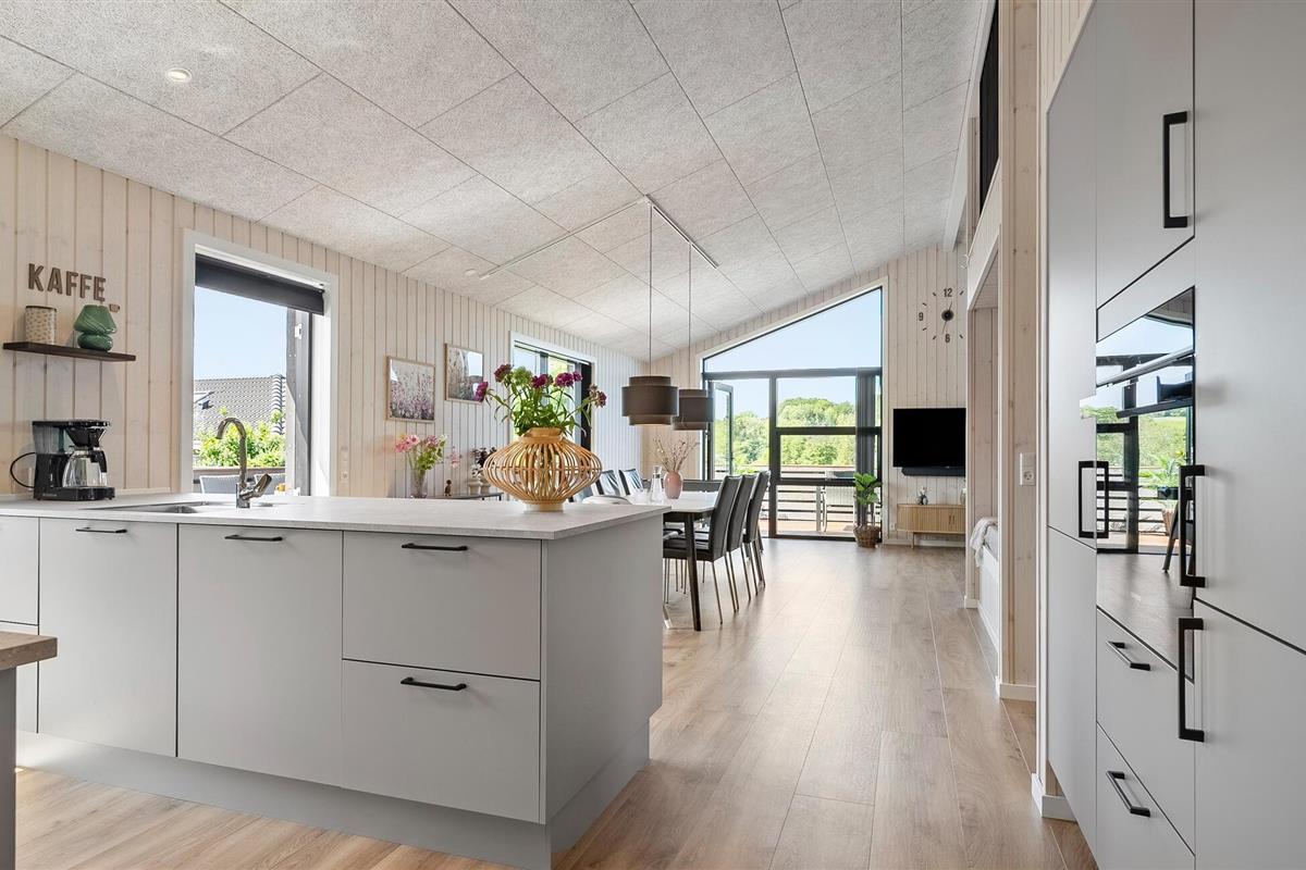 Geniet van een modern vakantiehuis met Finse bad en terras vlakbij het strand in Sønderballe, Denemarken.