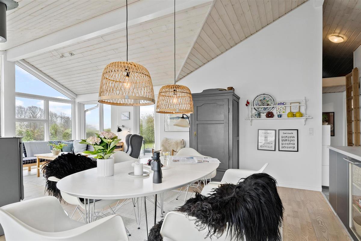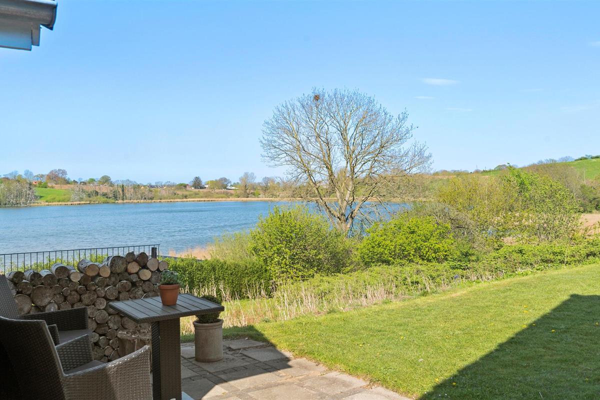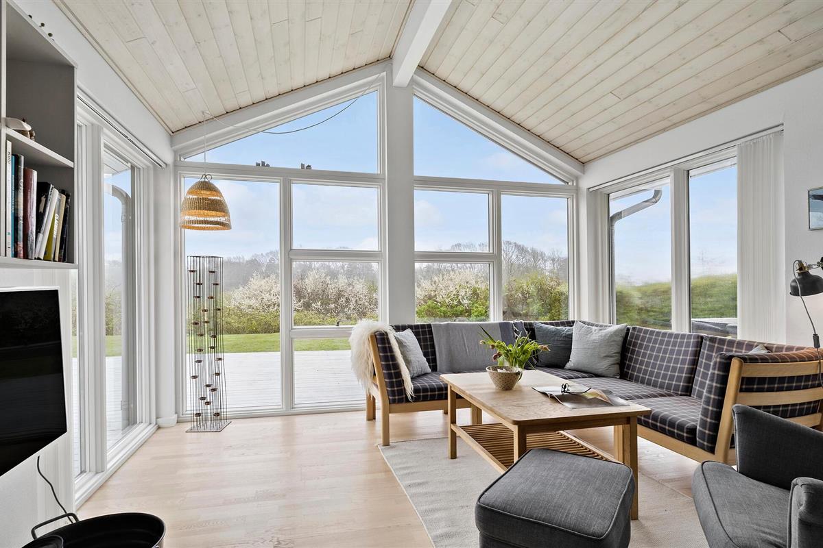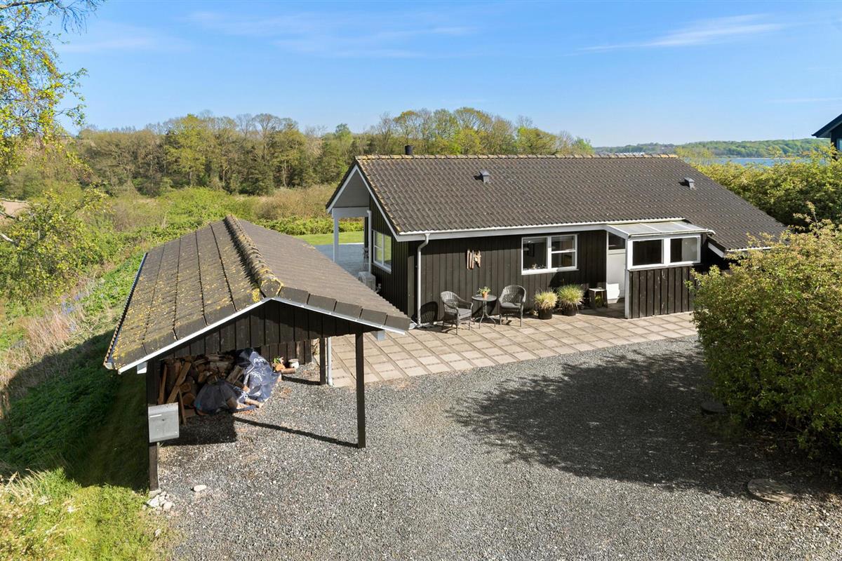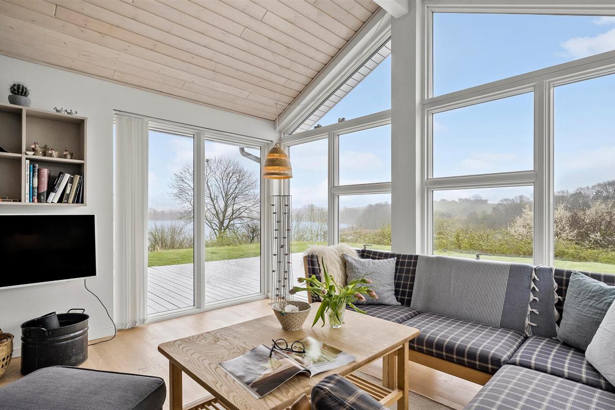 Comfortabel vakantiehuis met panoramisch uitzicht, bubbelbad en groot houten terras aan Sønderballe Strand.