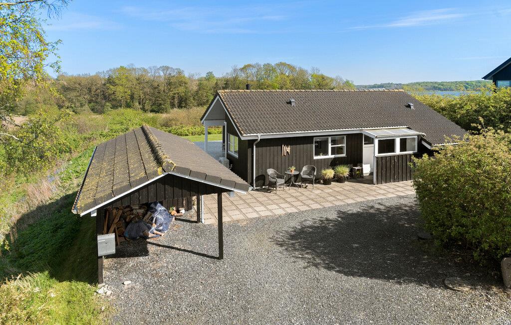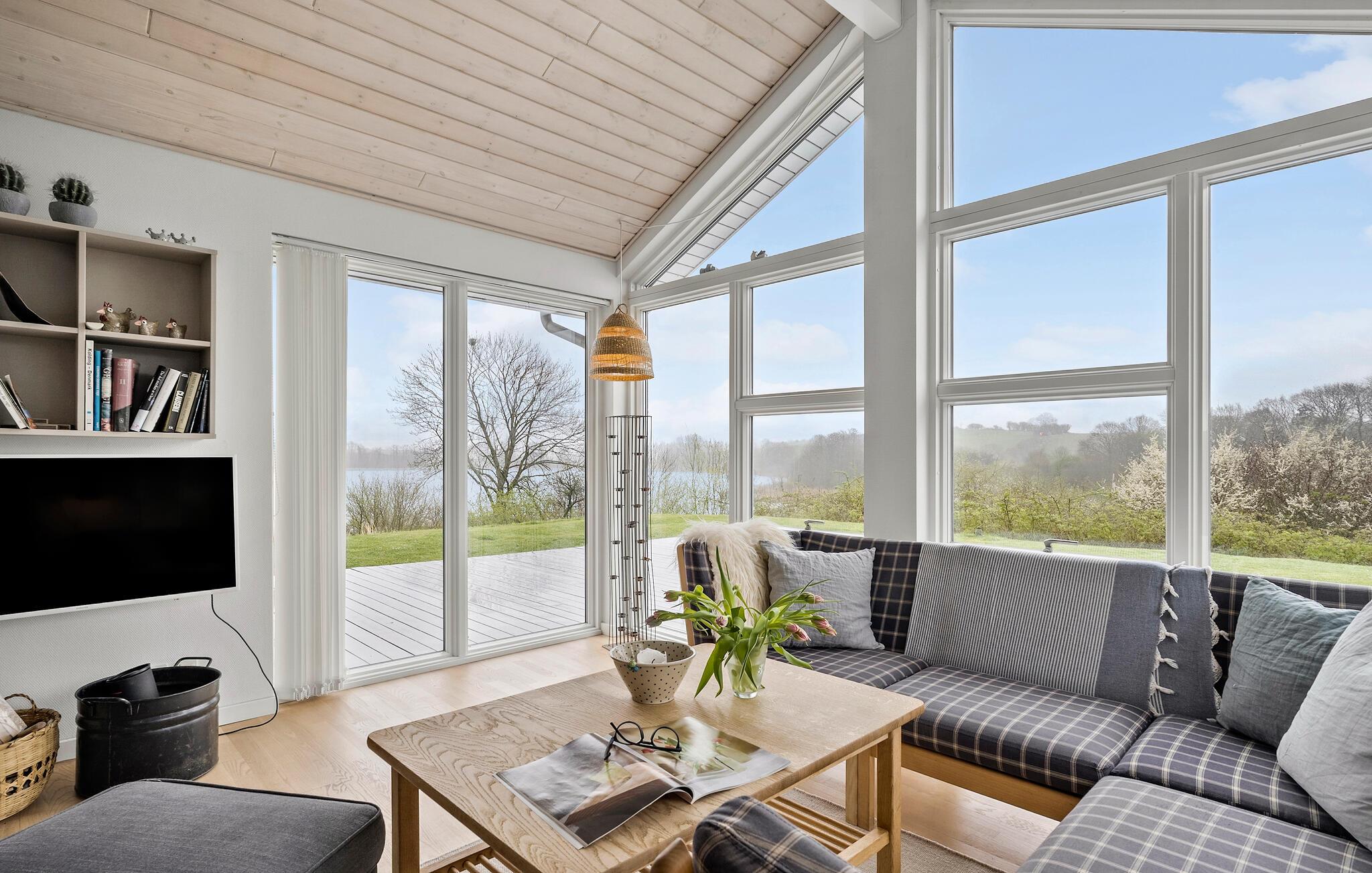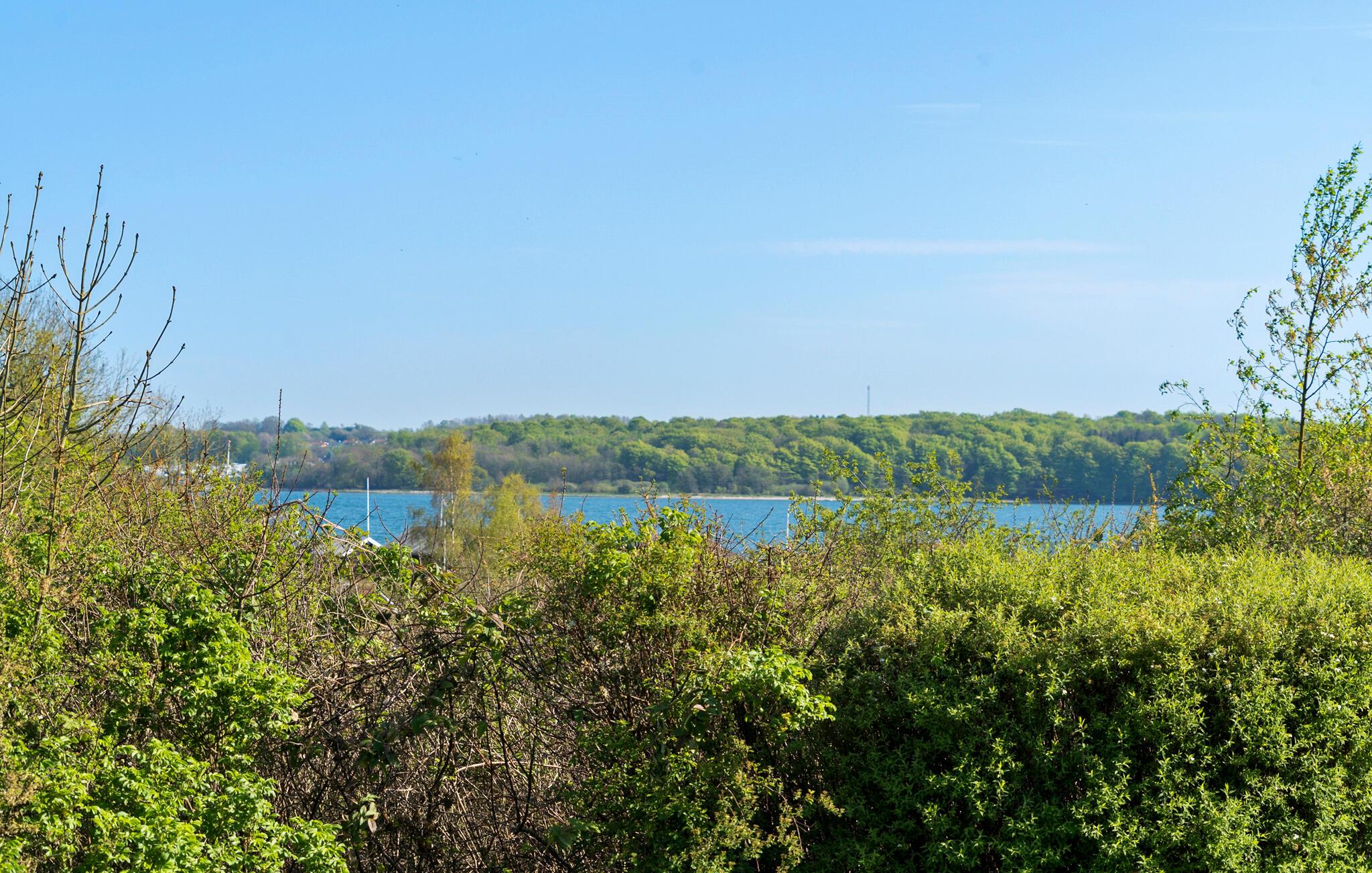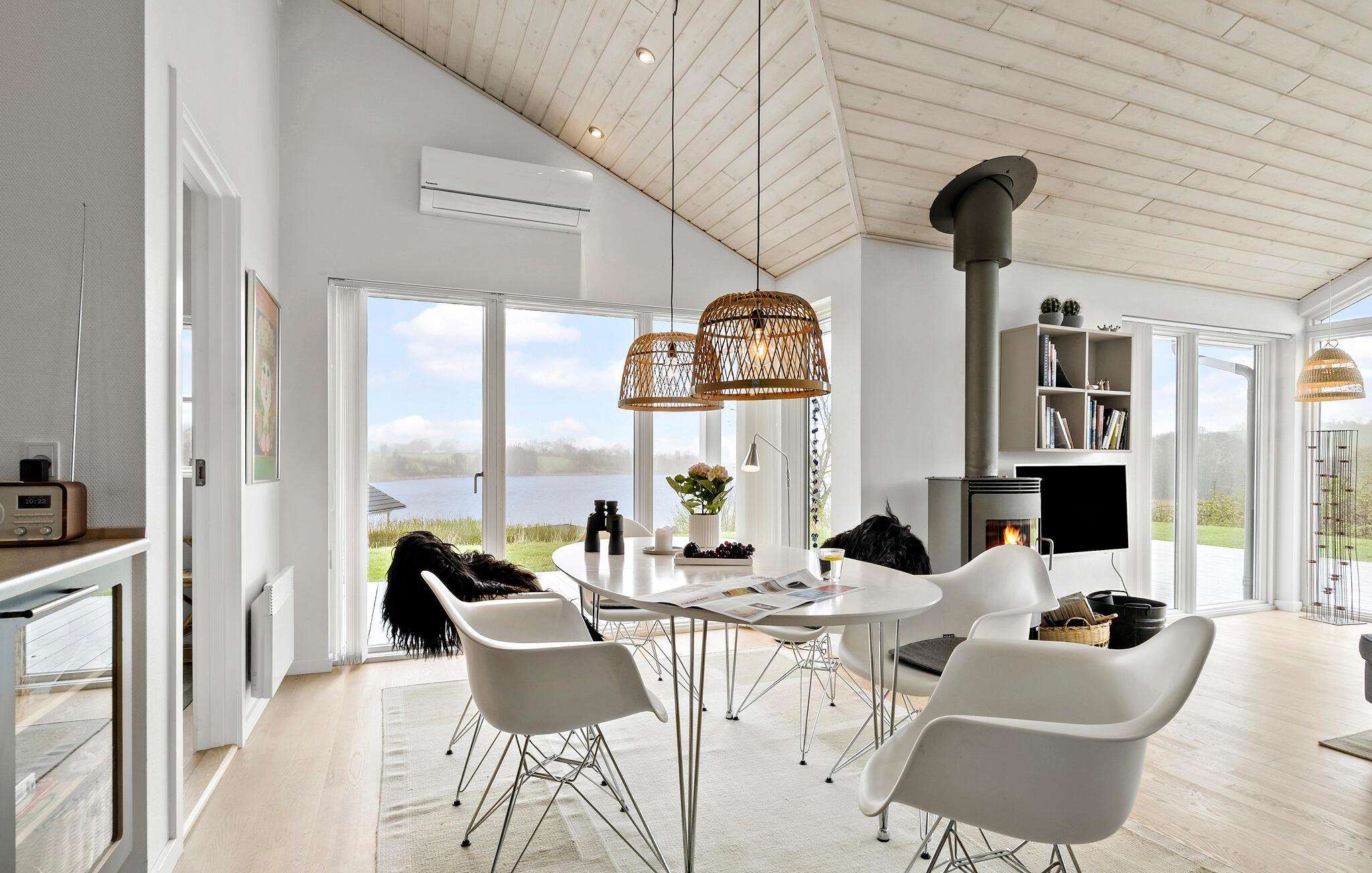 Ontspan in dit sfeervolle vakantiehuis met panoramisch uitzicht en bubbelbad aan Sønderballe Strand, dicht bij zee.