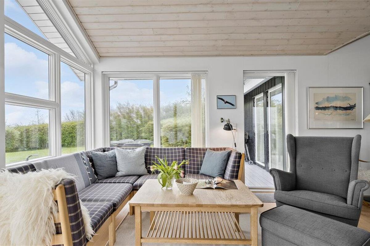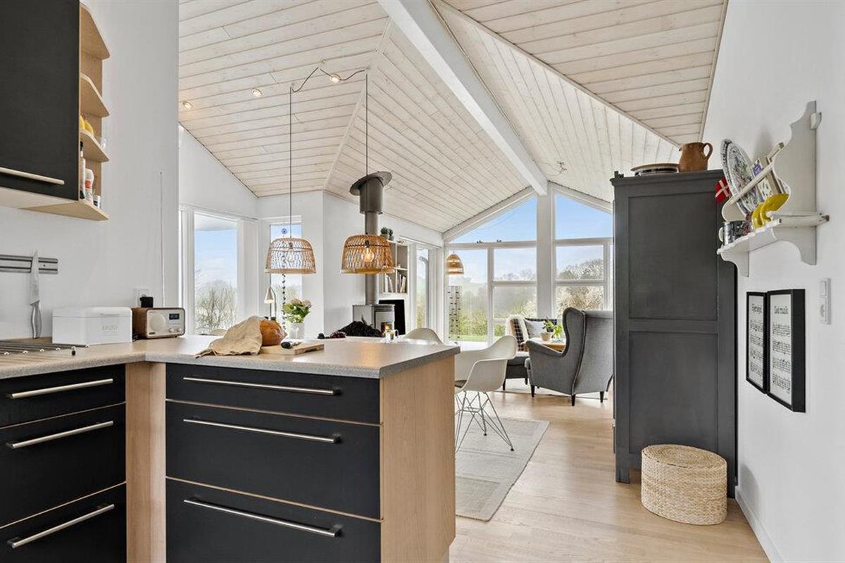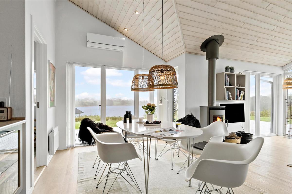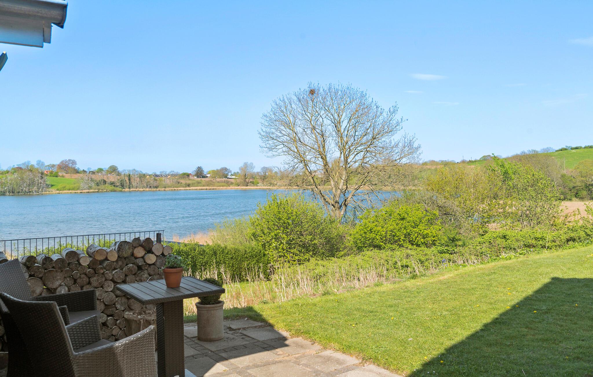 Ontspan in dit sfeervolle vakantiehuis met panoramisch uitzicht en bubbelbad aan Sønderballe Strand, dicht bij zee.