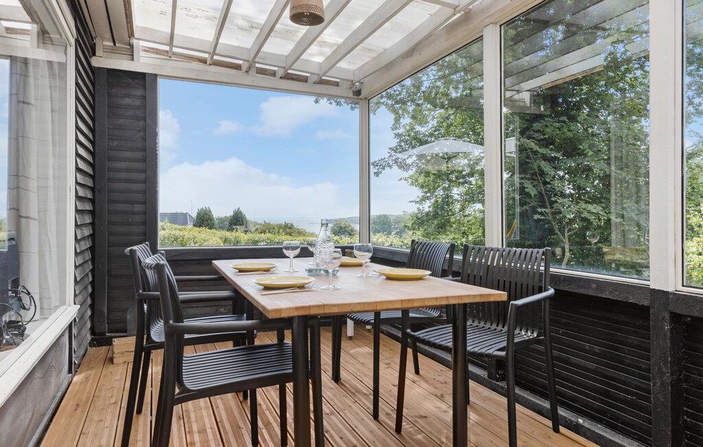 Naast de uitnodigende serre waar je kunt dineren, wacht buiten een terras met veel frisse lucht en vakantierust op je. Laat je kinderen spelen en rondrennen in de tuin en kom tot rust terwijl je geniet van het fantastische uitzicht op de baai van Genn.