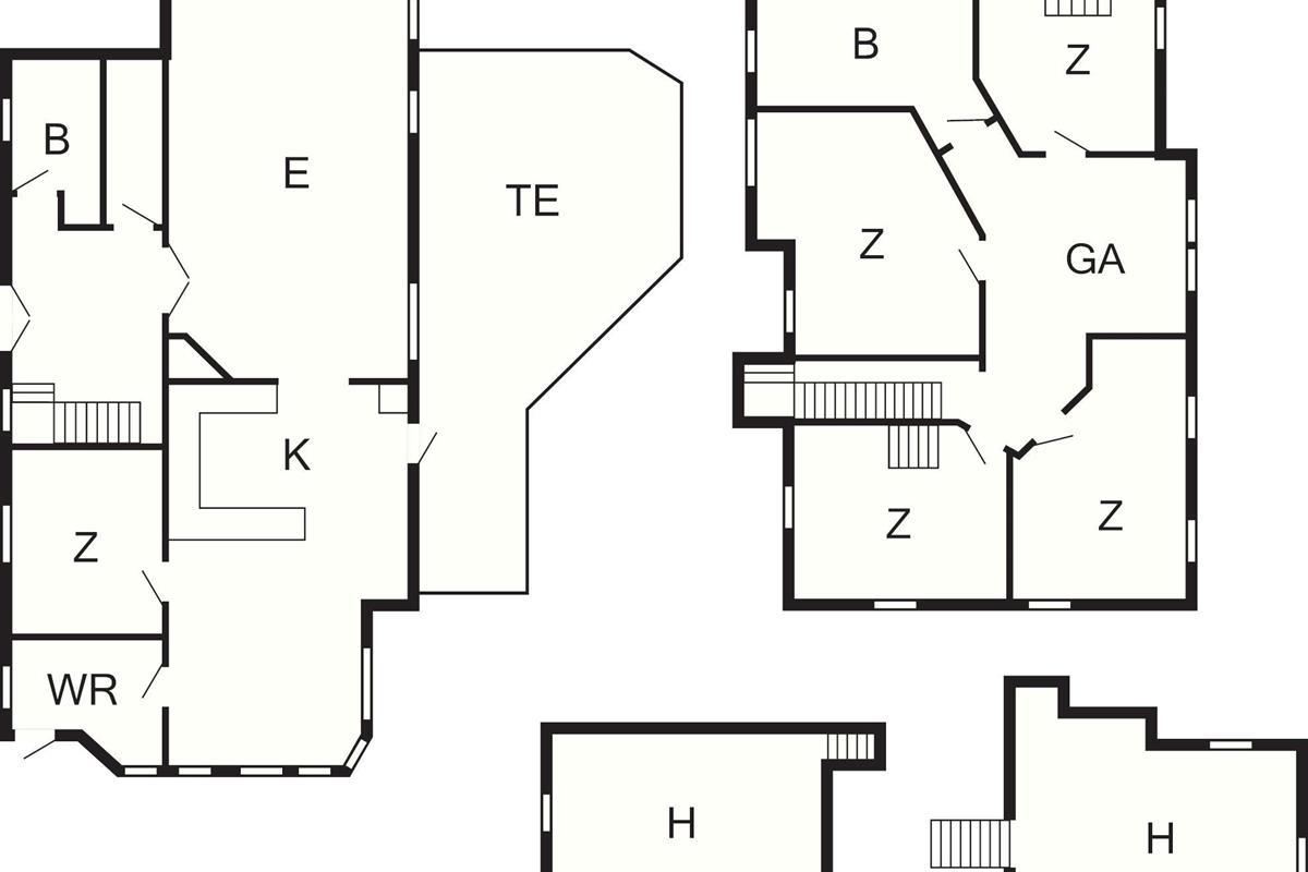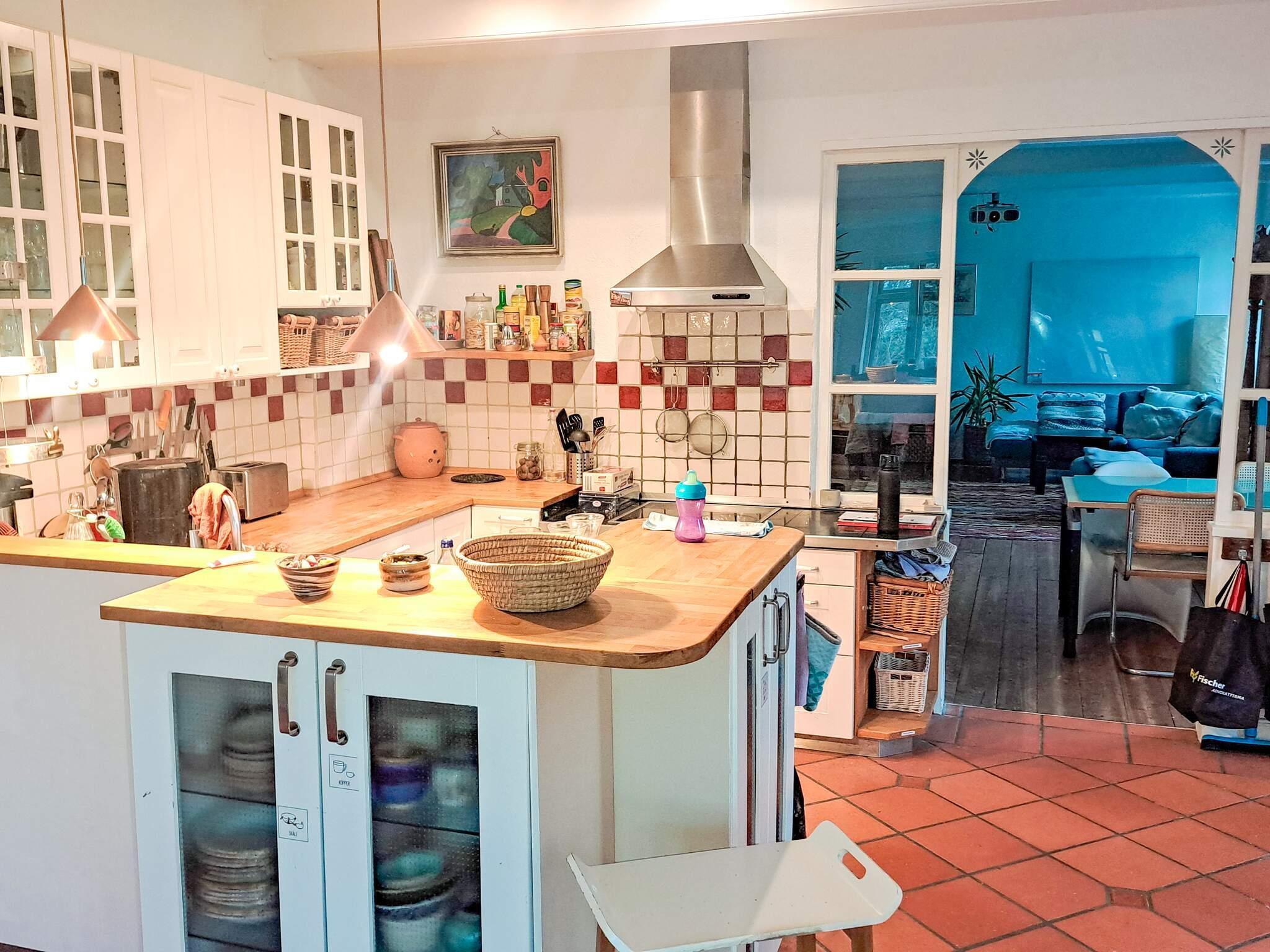 Das Haus besteht aus einer Eingangshalle mit Treppe in den 1. Stock, einem großen Küchen-/Wohnbereich mit Essecke für acht Personen, einem Wohnzimmer mit TV, vier Schlafzimmern und einem hellen Aktivitätsraum mit Tischkicker. Außerdem gibt es oben unter der Dachschräge drei Schlafböden mit jeweils zwei Matratzen, die je nach Bedarf verschoben werden können. Außerdem zwei Bäder im Haus, eines davon mit Badewanne.