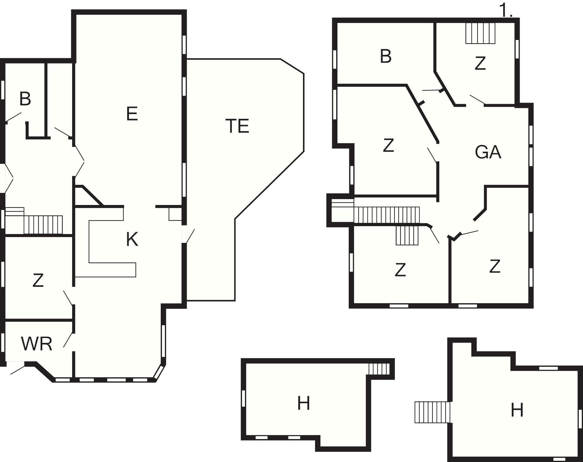 4 Schlafz.: (1DB)+(1DB)+(1DB)+(1DB+1B), Kinderbett