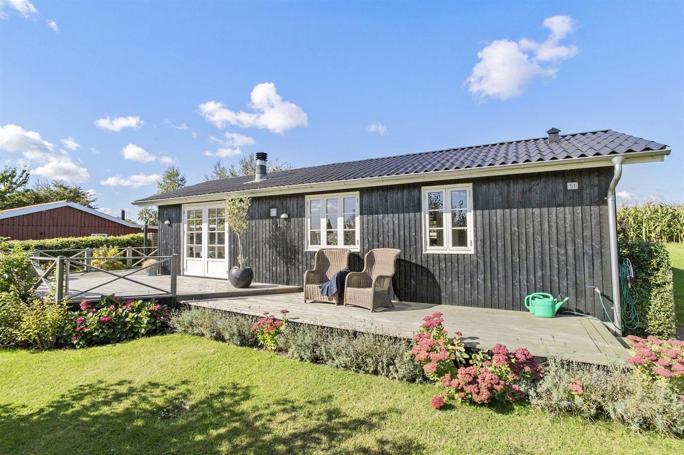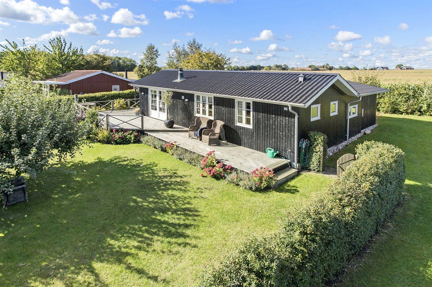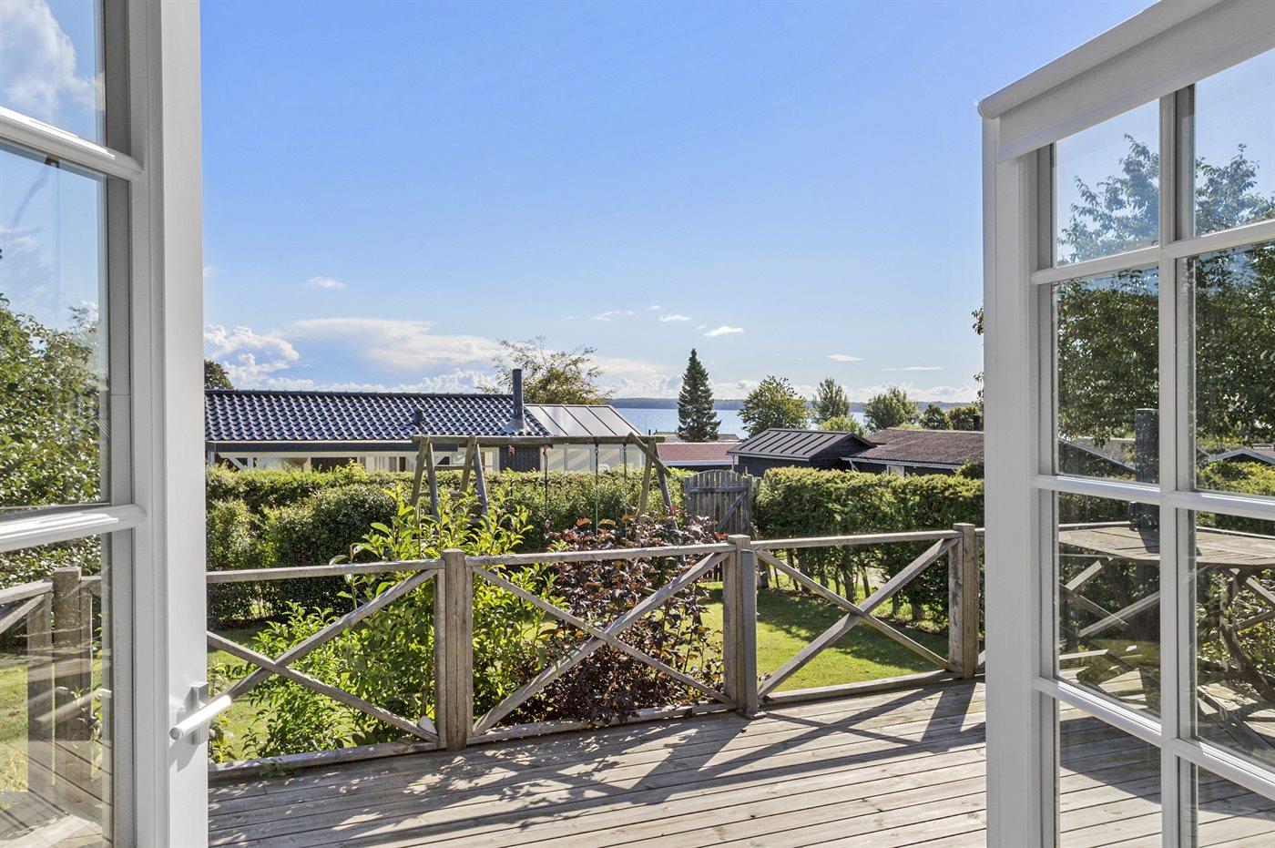 Comfortabel vakantiehuis in Juelsminde met zeezicht, houtkachel en groot terras, ideaal voor een ontspannen verblijf.