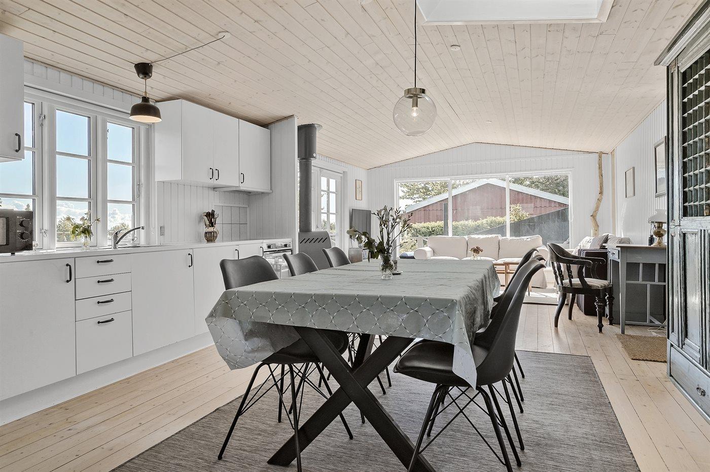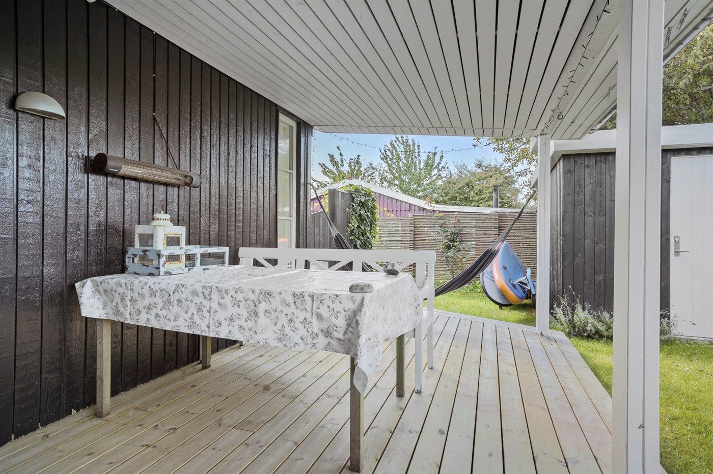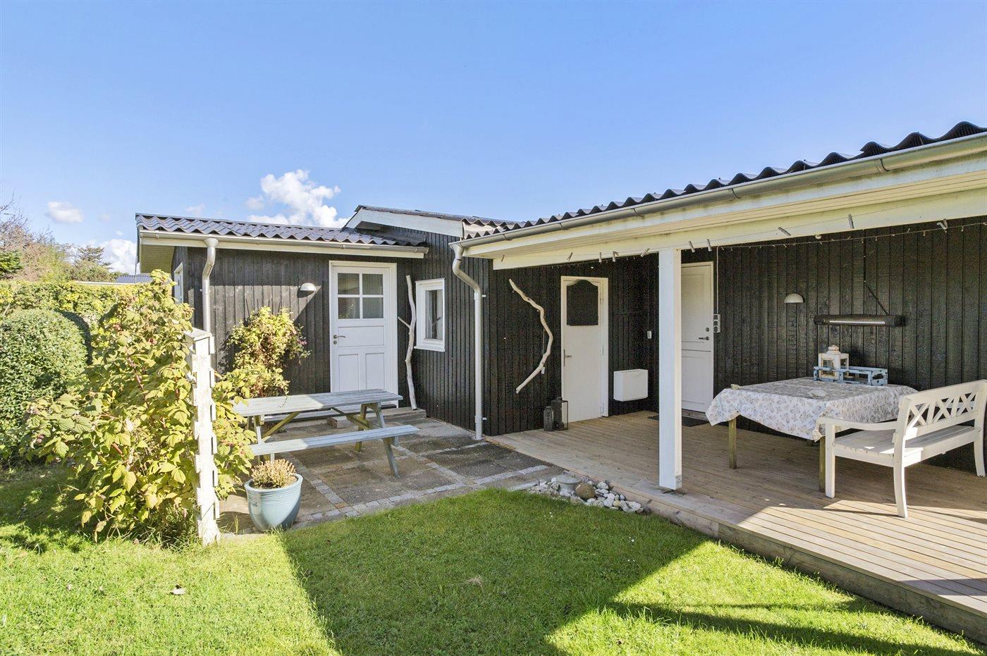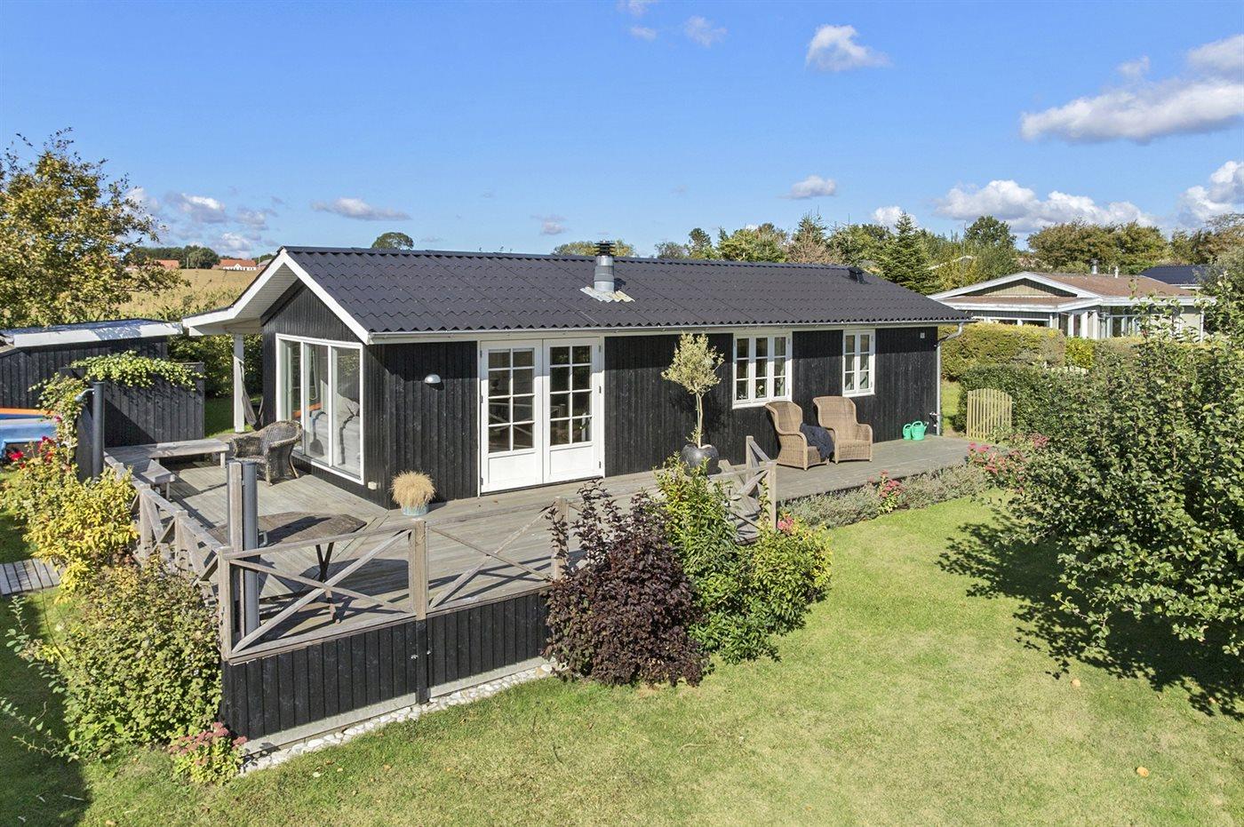 Comfortabel vakantiehuis in Juelsminde met zeezicht, houtkachel en groot terras, ideaal voor een ontspannen verblijf.