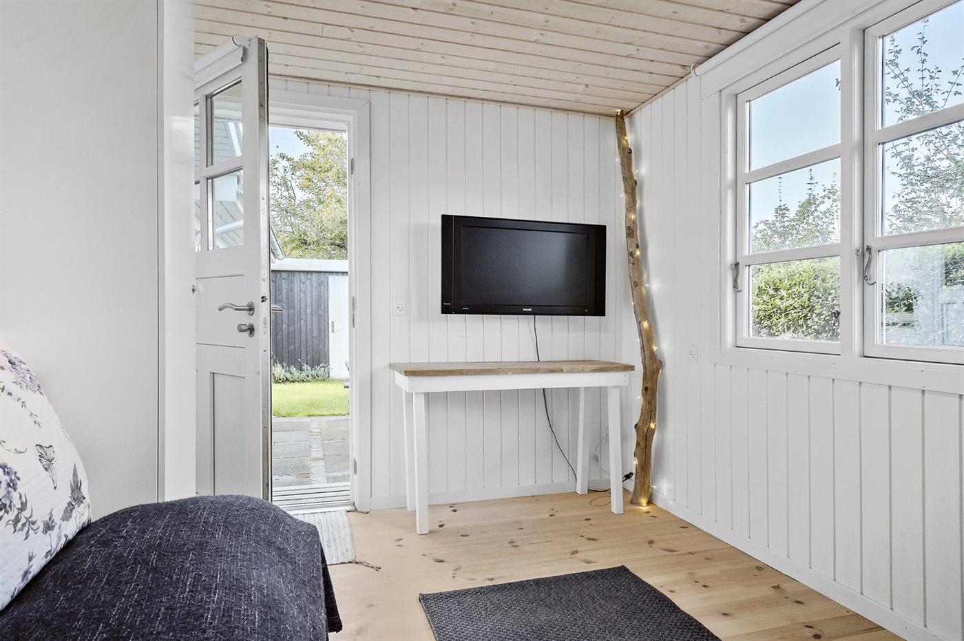 In de vakantiewoning is aanwezig televisie.1 Chromecast.Tv via streaming. Tenminste 4 deense zenders. 1-3 sweedse zenders. 1-3 noorse zenders. 1-3 duitse zenders. Draadloos internet.