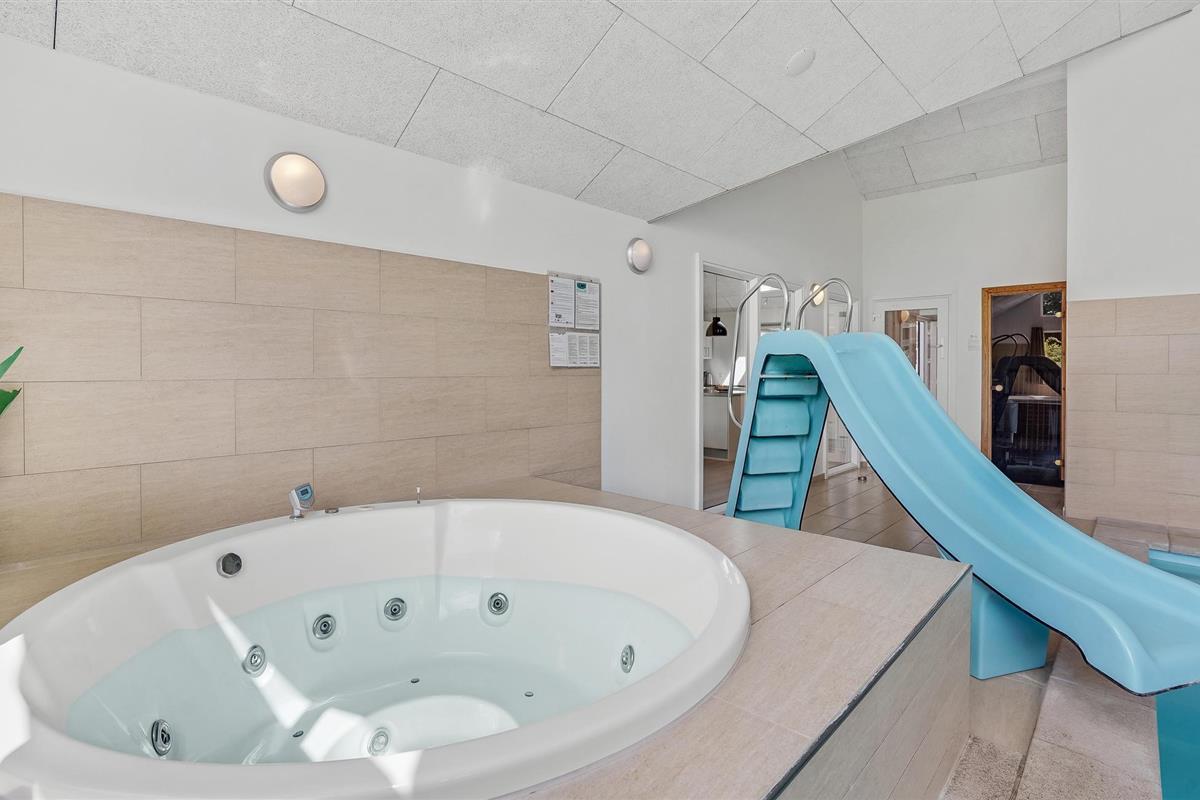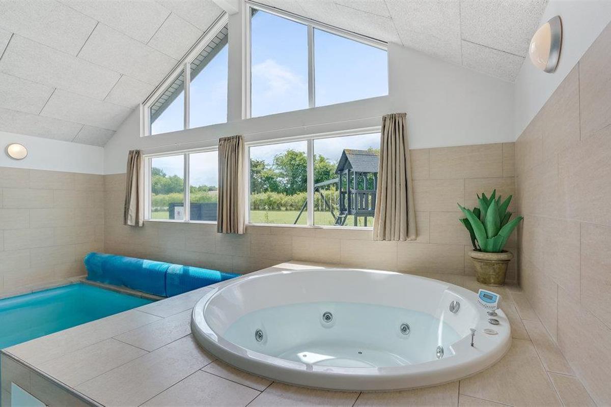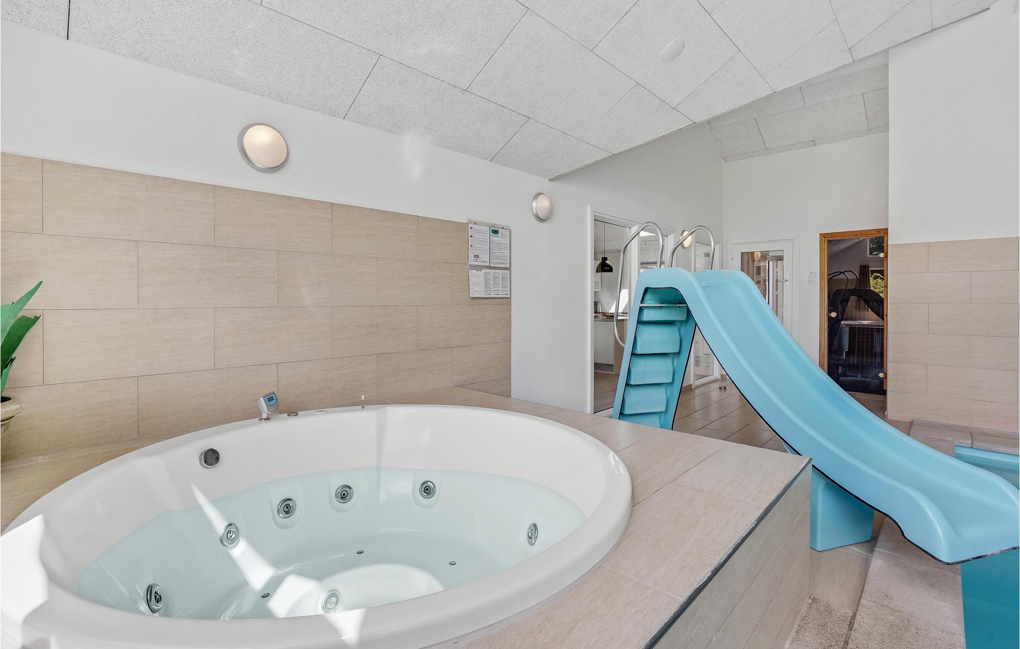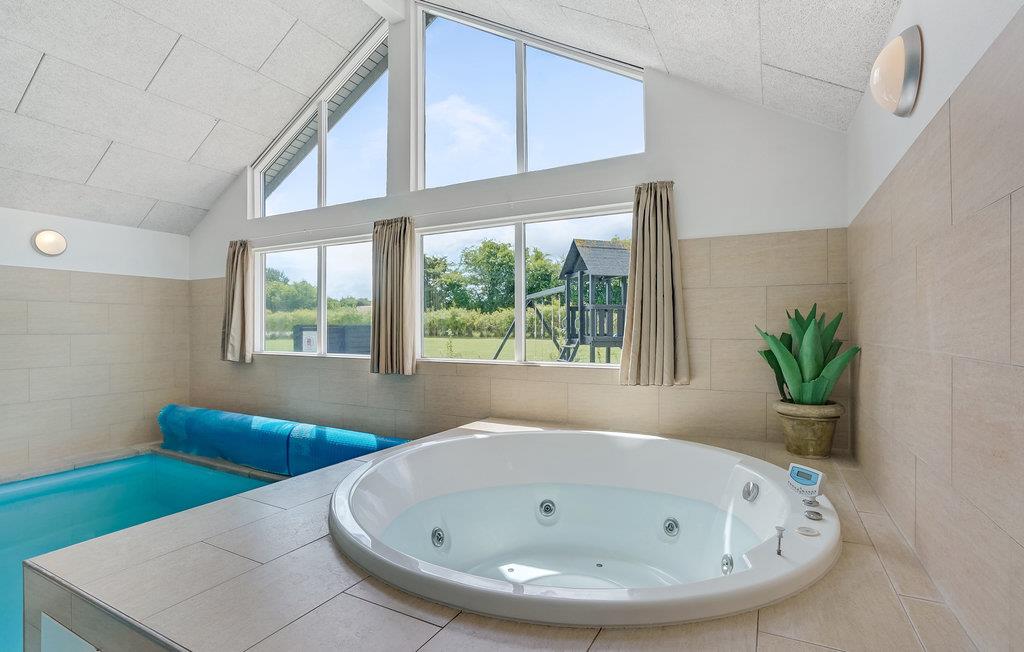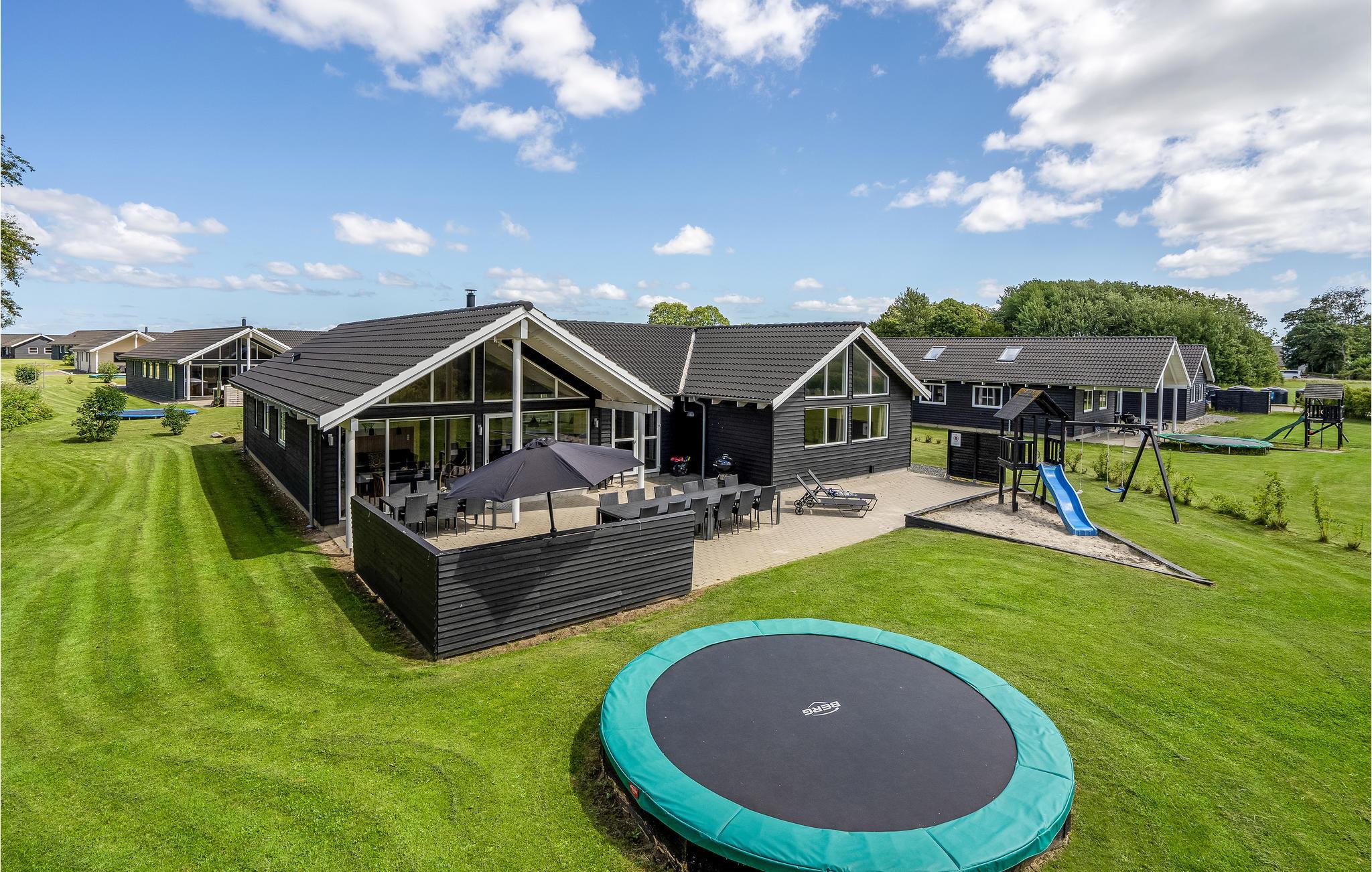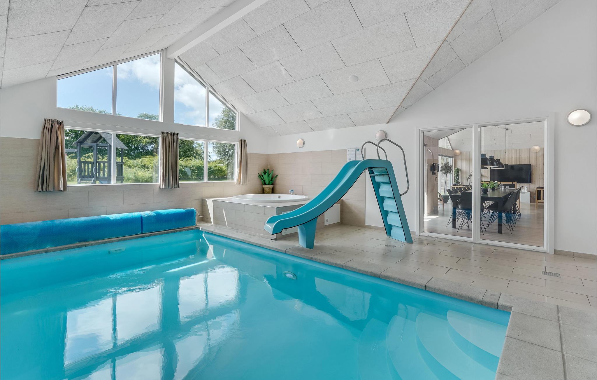 Ruim en energiezuinig vakantiehuis nabij zee met binnenzwembad, sauna en speeltoestellen voor een actieve vakantie in Denemarken.