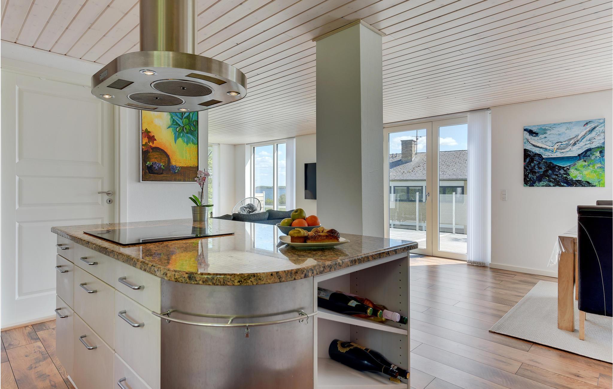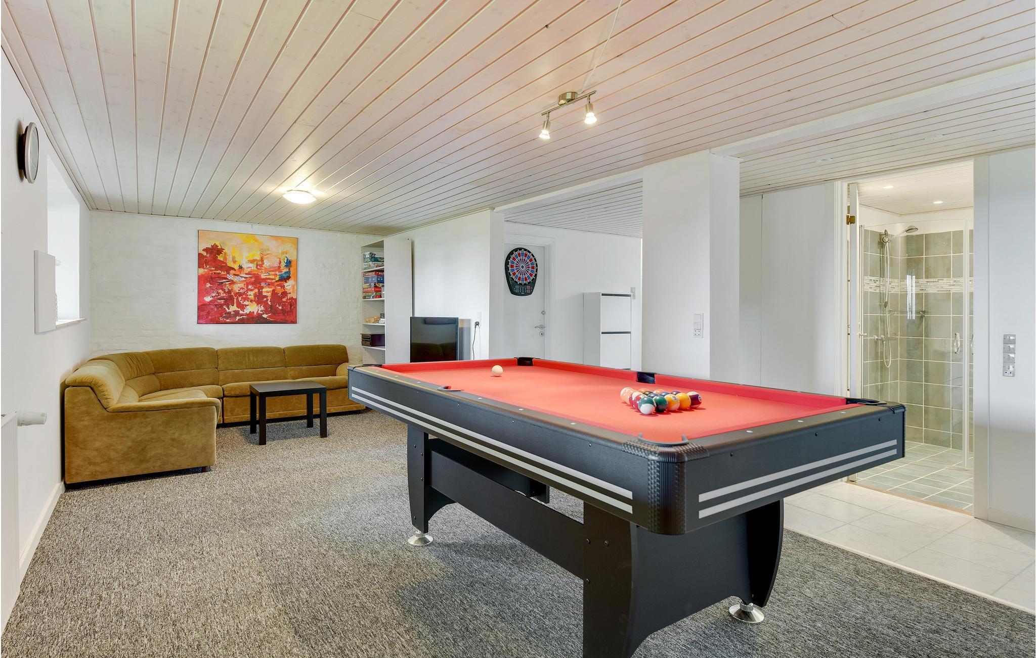 Dit grote en mooie vakantiehuis ligt aan het strand in Sønderhav. Zowel vanuit het huis als vanaf het terras heeft u een fantastisch uitzicht op het water en het Flensburg Fjord. De open keuken van het huis staat in verbinding met het eetgedeelte en de woonkamer. Hier vindt u zowel een houtkachel als een energievriendelijke warmtepomp die u op koele dagen en avonden kunt gebruiken. Het huis heeft een leuke activiteitenruimte waar u kunt biljarten en u kunt vermaken met verschillende activiteiten, mocht het weer niet meewerken.