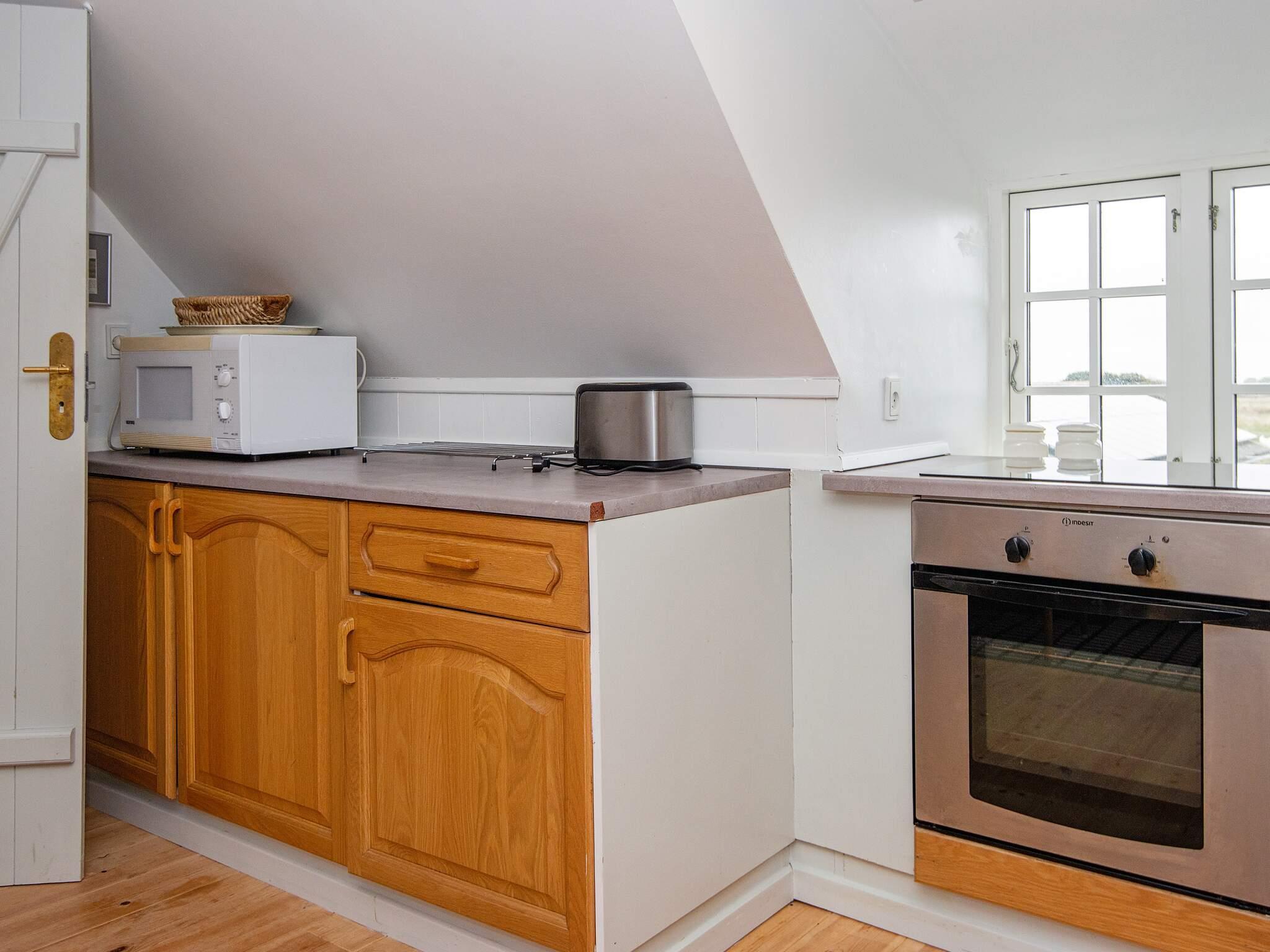 Ferienwohnung im 1. Stock des alten Bauernhauses gelegen. Blick auf das Wattenmeer und auf die alte Stadt Sønderho. Im EG befindet sich der Eingangsbereich, wo Waschmaschine und Trockner stehen. Im ersten Stock befinden sich die offene Küche mit Wohnzimmer, das Bad und zwei Schlafzimmer. Auf dem Bauernhof gibt es die Möglichkeit, ein Pferd im Stall unterzustellen. Zur Wohnung gehört ein kleiner Garten.