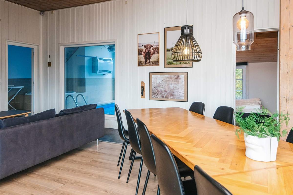 Dieses Pool- und Aktivitätshaus hat eine attraktive Lage auf einem großen, abgeschirmten Dünengrundstück, am Ende einer kleinen Stichstraße. Vom weitläufigen Grundstück aus hat man Aussicht zur alten Mühle in Sønderho.