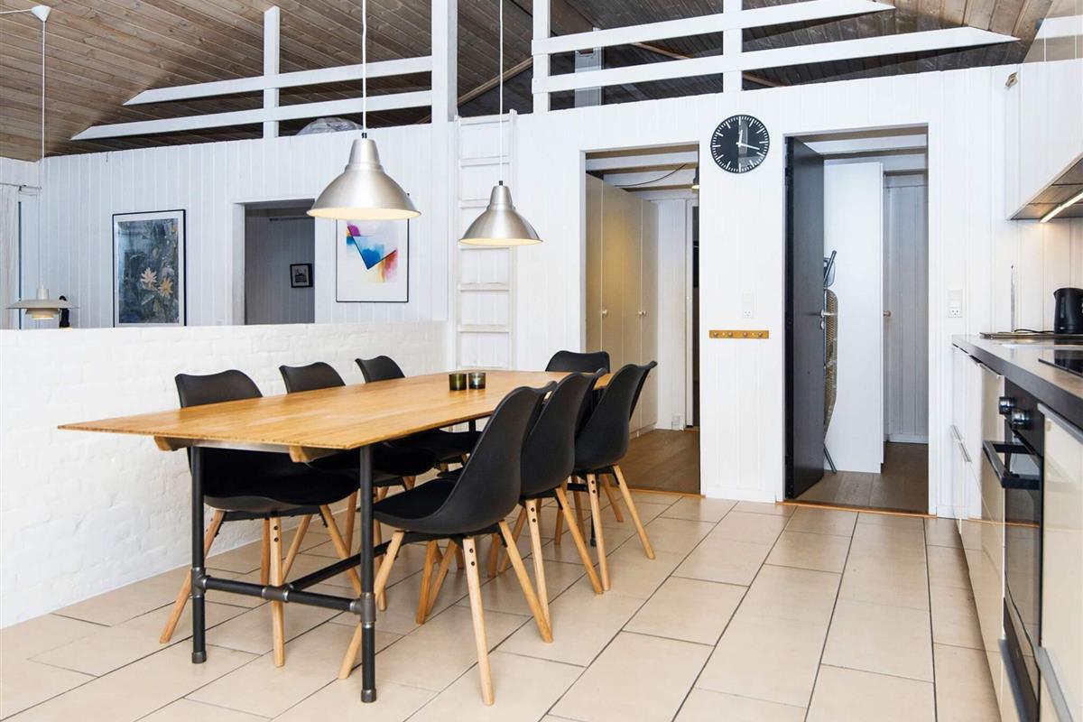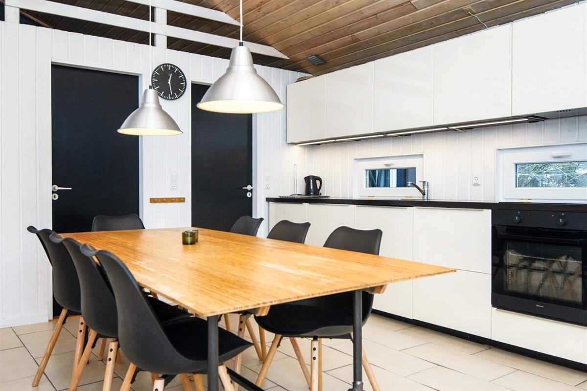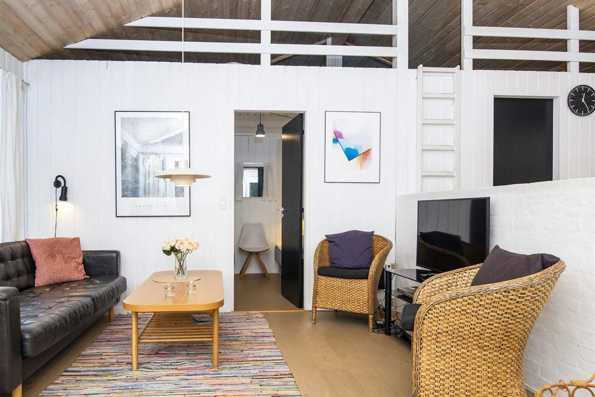 Die große Wohnküche ist mit Cerankochfeldern, separatem Backofen mit Grill- und Umluftfunktion, Dunstabzugshaube und Geschirrspüler ausgestattet. Der große Ess-/Wohnbereich bietet direkten Zugang zur großen offenen/überdachten Terrasse. Das Wohnzimmer ist mit einem Fernseher mit dänischen und deutschen Sendern, einer Stereoanlage und hochwertigen dänischen Möbeln ausgestattet.