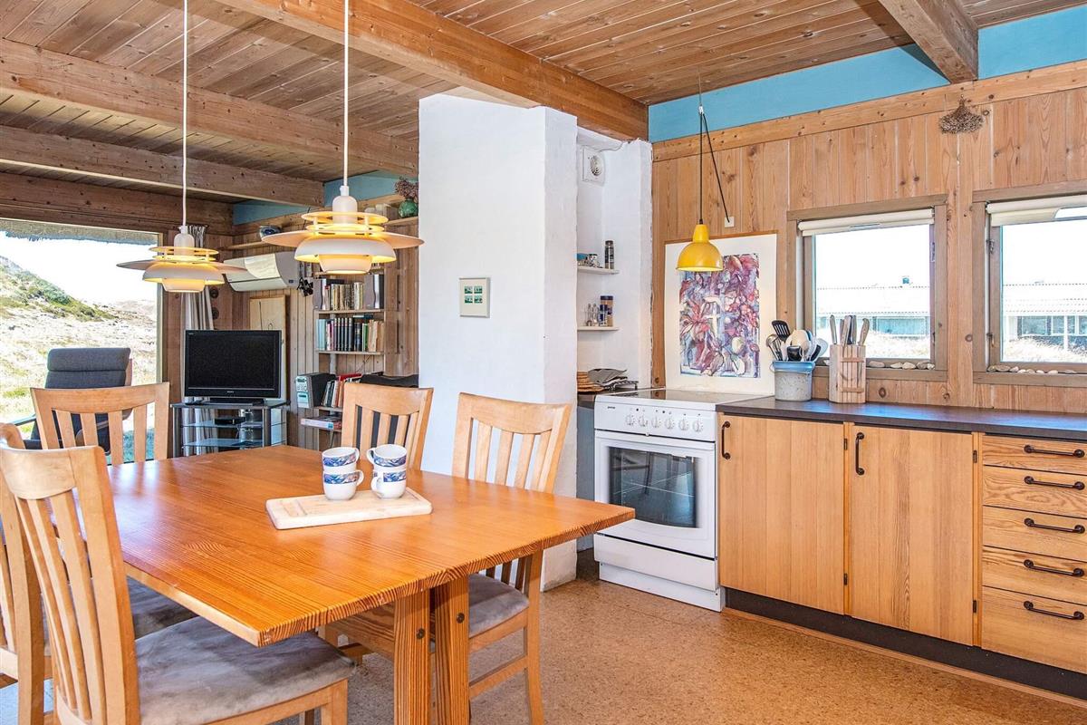 Ferienhaus auf einem großen Naturgrundstück in der Nähe der Dünen von Sønderho. Das Haus verfügt über eine offene Küche, die mit dem Essbereich und dem Wohnzimmer verbunden ist und so ein geräumiges und einladendes Ambiente für das Familienleben schafft. Vom Wohnzimmer aus gelangen Sie direkt auf die Terrasse, wo Sie lange, ruhige Sommerabende mit Blick auf die Natur genießen können.