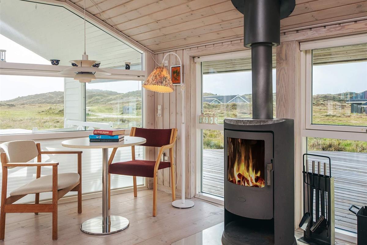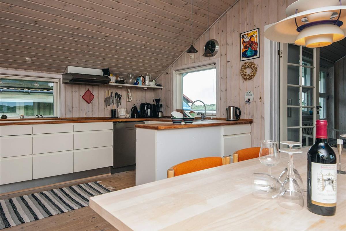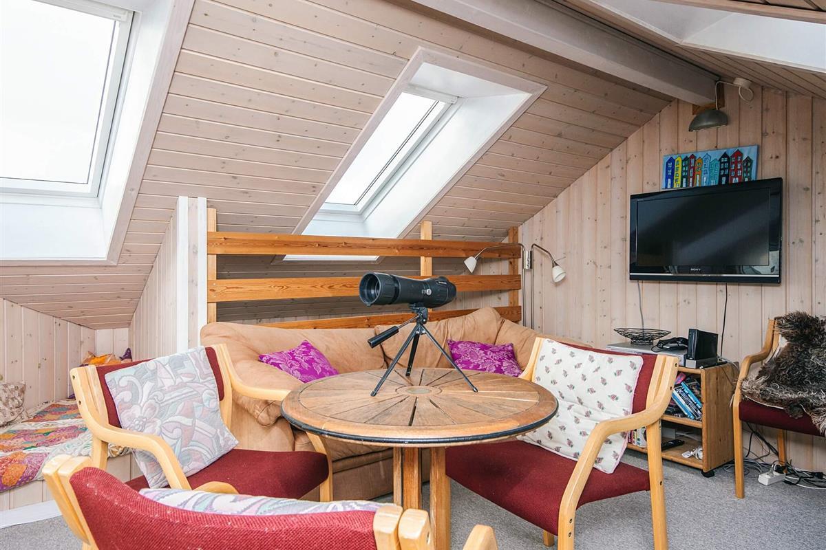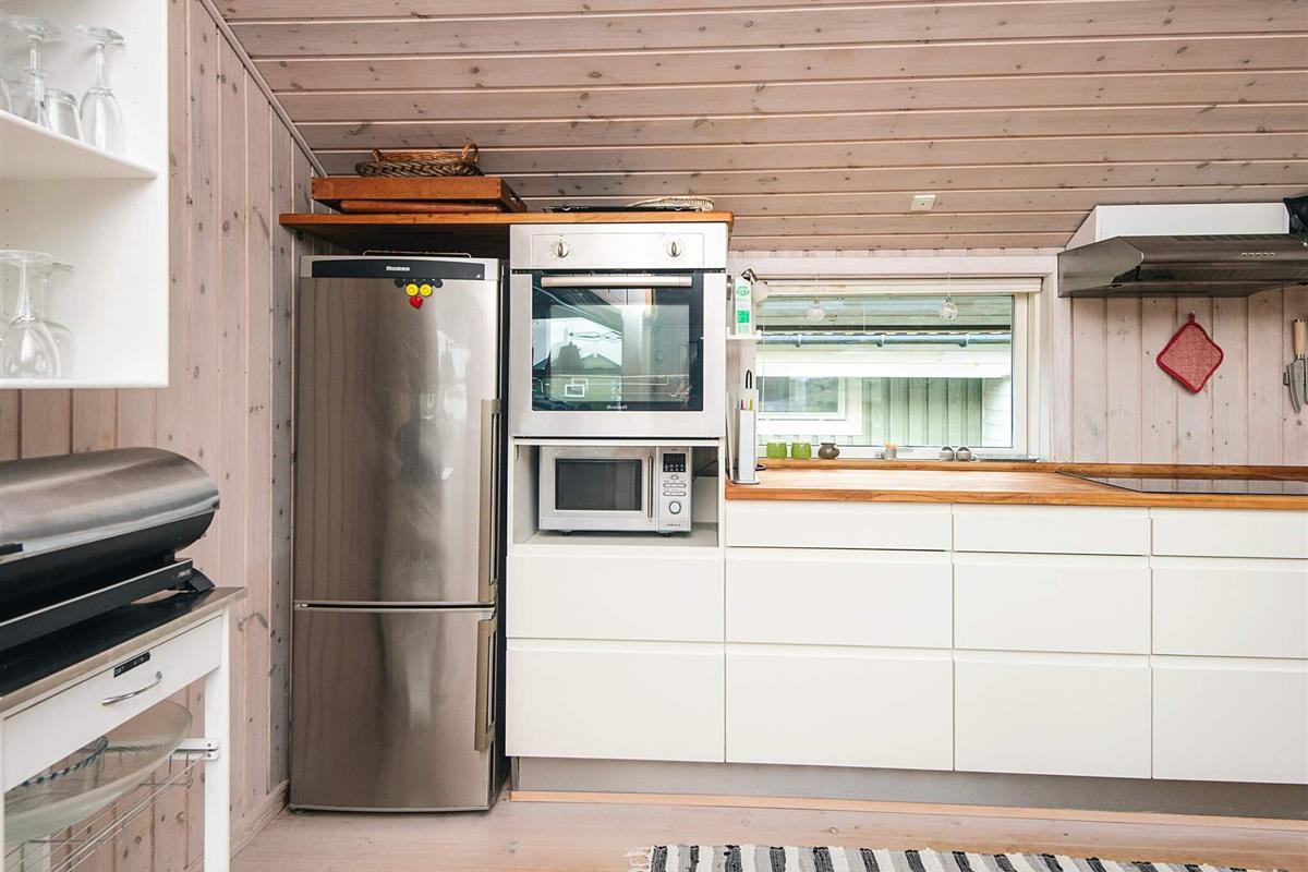 Das Ferienhaus ist mit drei Wohnzimmern besonders gut ausgestattet. Eines der Wohnzimmer befindet sich im Obergeschoss, hat einen Balkon und von dort aus können Sie das Meer sehen. Das zweite Wohnzimmer liegt in Verbindung mit zwei der Schlafzimmer und hier finden Sie einen extra Kühl- und Gefrierschrank. Das dritte Wohnzimmer befindet sich neben der Küche und hat einen gemütlichen Holzofen. Der offene Küchenbereich ist mit Küchengeräten gut ausgestattet. Im Ferienhaus gibt es zudem zwei Badezimmer, eines davon mit Sauna und Whirlpool.