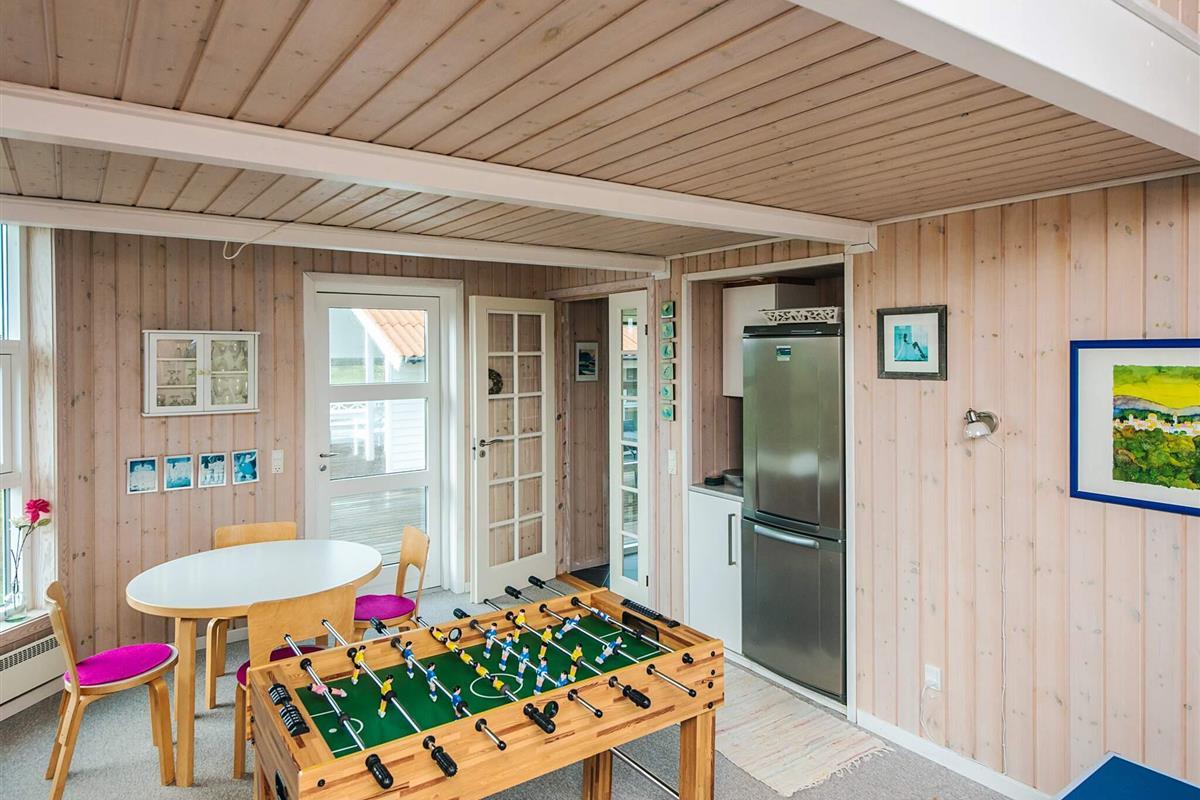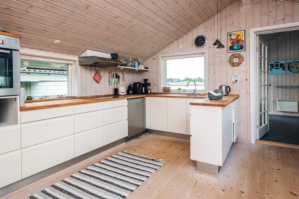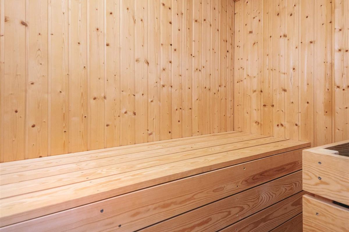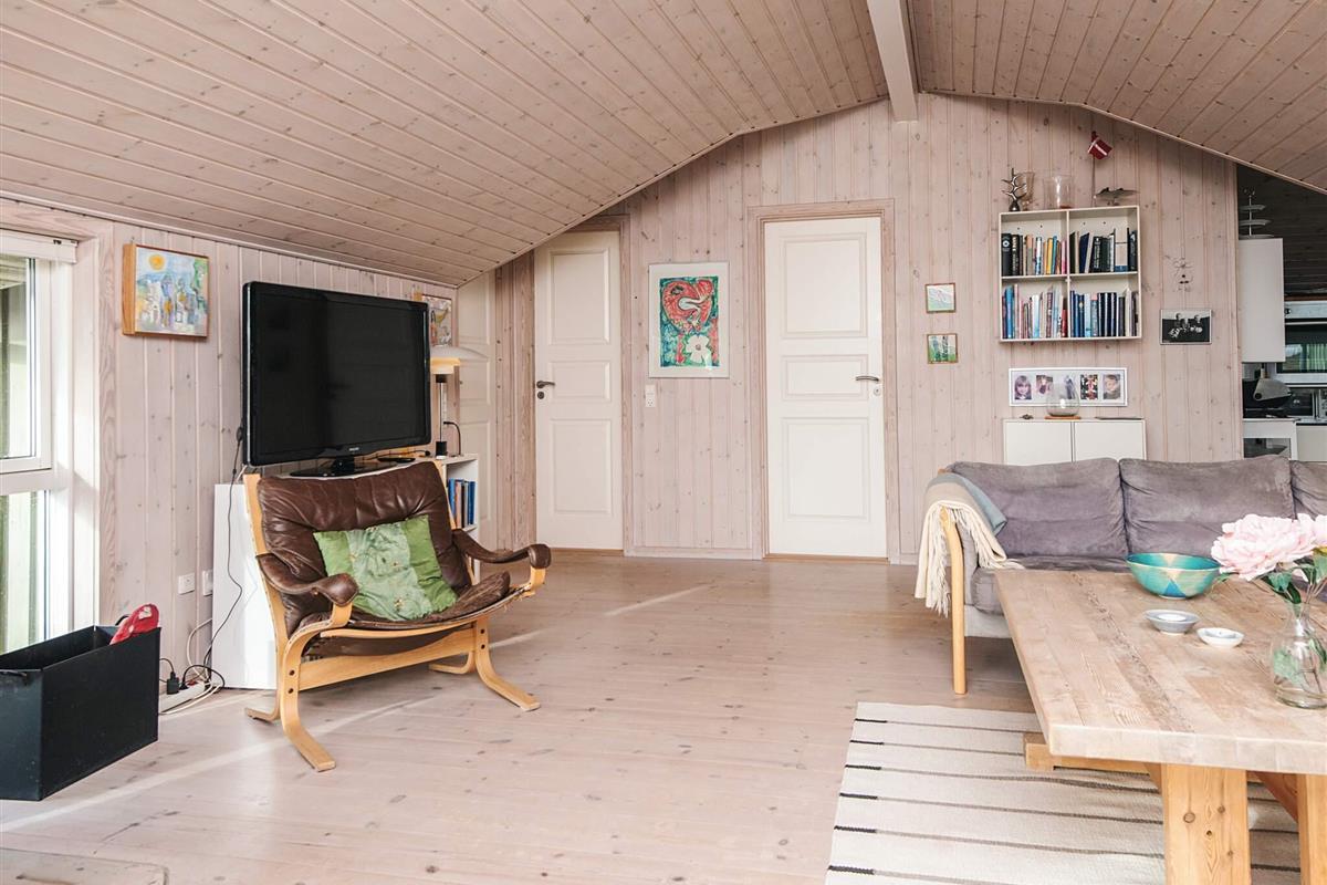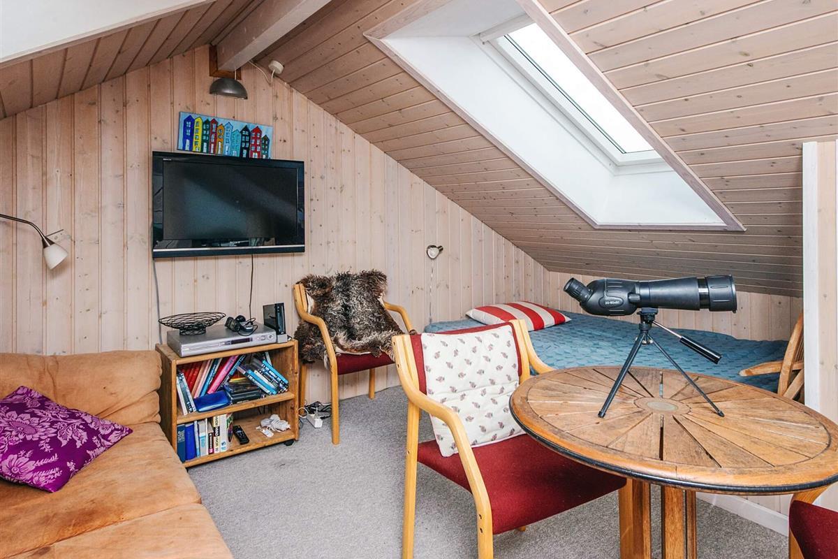 Das Ferienhaus ist mit drei Wohnzimmern besonders gut ausgestattet. Eines der Wohnzimmer befindet sich im Obergeschoss, hat einen Balkon und von dort aus können Sie das Meer sehen. Das zweite Wohnzimmer liegt in Verbindung mit zwei der Schlafzimmer und hier finden Sie einen extra Kühl- und Gefrierschrank. Das dritte Wohnzimmer befindet sich neben der Küche und hat einen gemütlichen Holzofen. Der offene Küchenbereich ist mit Küchengeräten gut ausgestattet. Im Ferienhaus gibt es zudem zwei Badezimmer, eines davon mit Sauna und Whirlpool.