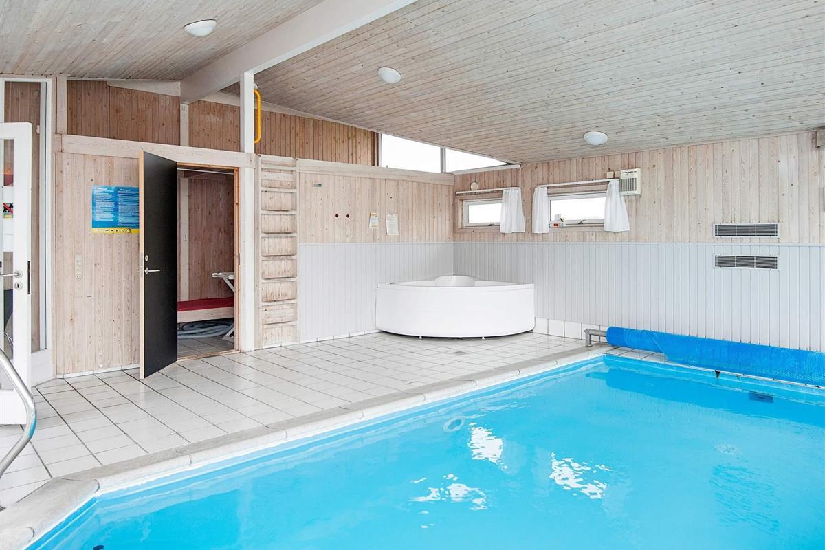 Das Haus hat insgesamt drei Bäder, alle m. Dusche ausgestattet. Der Poolbereich bietet eine gr. Fensterpartie, zudem ein 18 m² gr. Becken sowie Whirlpool und Sauna.