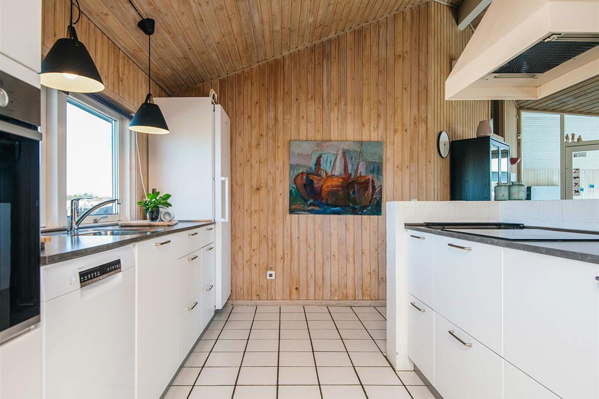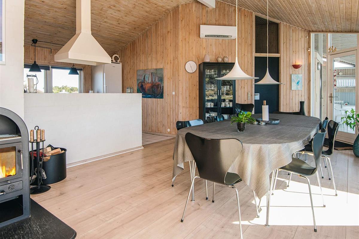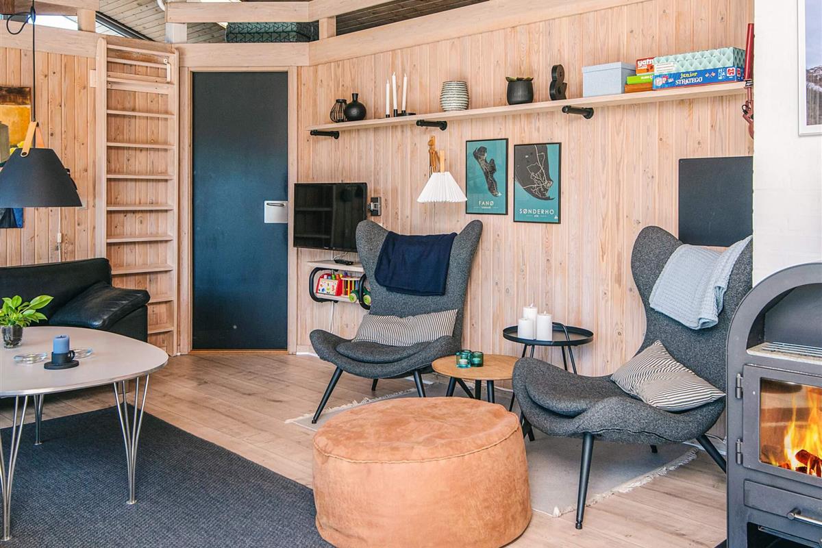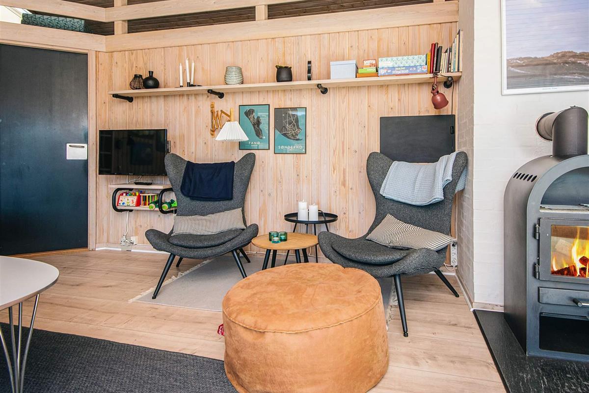 Ein Teil der insgesamt 175 m² gr. Terrassenfläche ist kindgerecht, mit niedrigem Zaun versehen. Für Kleinkinder stehen zudem zwei Hochstühle, extra Babybett m. Bettdecke, Dreirad und Kindertisch bereit. Im Schuppen findet man ausreichend Stauraum für z.B. Ihre Golfausrüstung. Unweit liegt nämlich bei Fanø Bad der 18-Loch Sealink-Golfplatz.