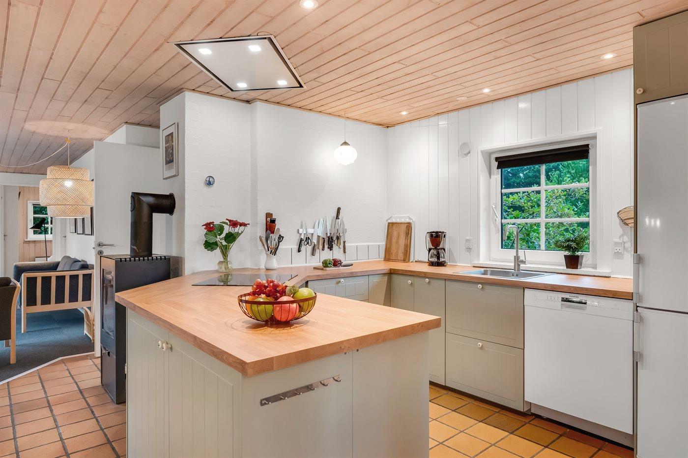 De keuken is uitgerust met koelkast Er zijn 4 keramische kookplaten, heteluchtoven, magnetron en vaatwasser.
