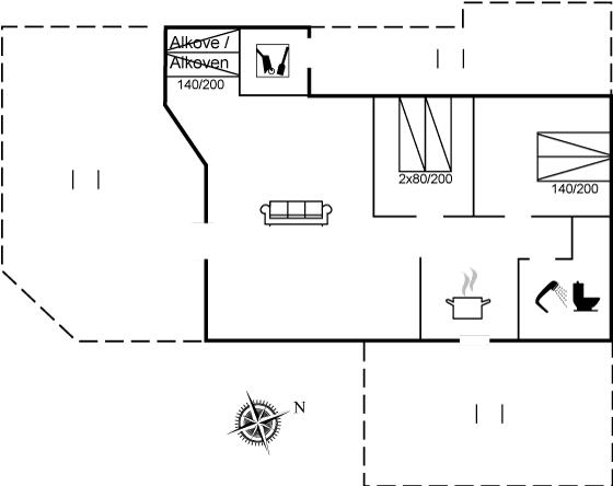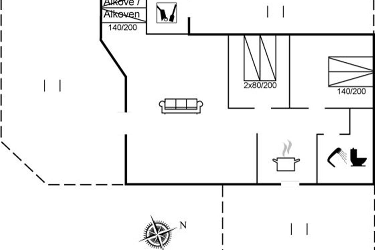 De vakantiewoning is gelegen op een 2625 m² groot natuural grond. Afstand tot de zee 1000 m. Dichtstbijzijnde winkel 1000 m. Bij de vakantiewoning hoort 70 m² terras. Gereedschapsruimte. Zandbak. Parkeerplaats bij het huis.