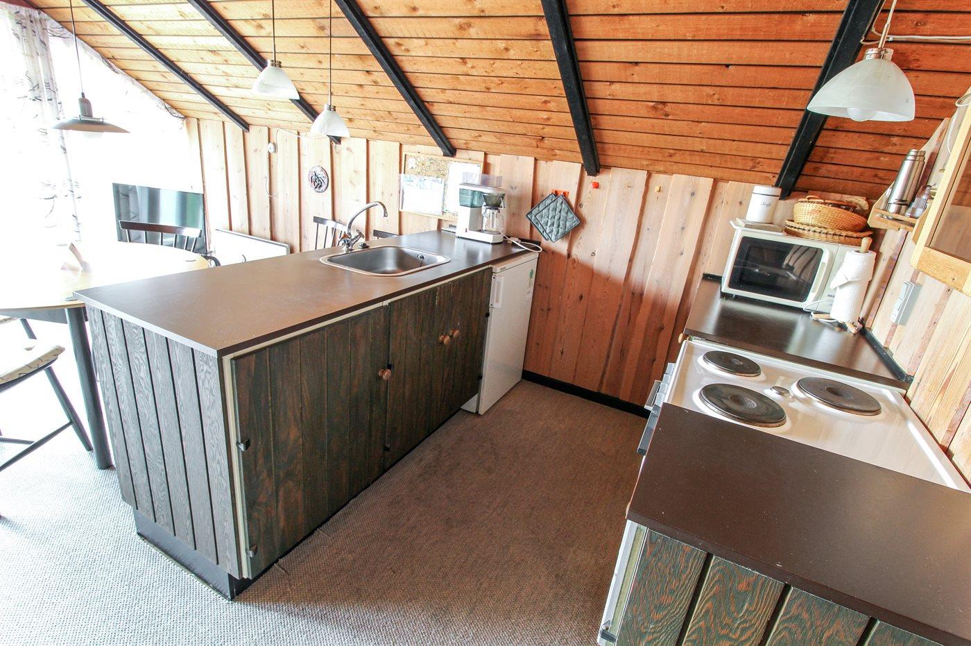 De keuken is uitgerust met koelkast Er is 4 elektrische kookplaten, bakoven, magnetron.