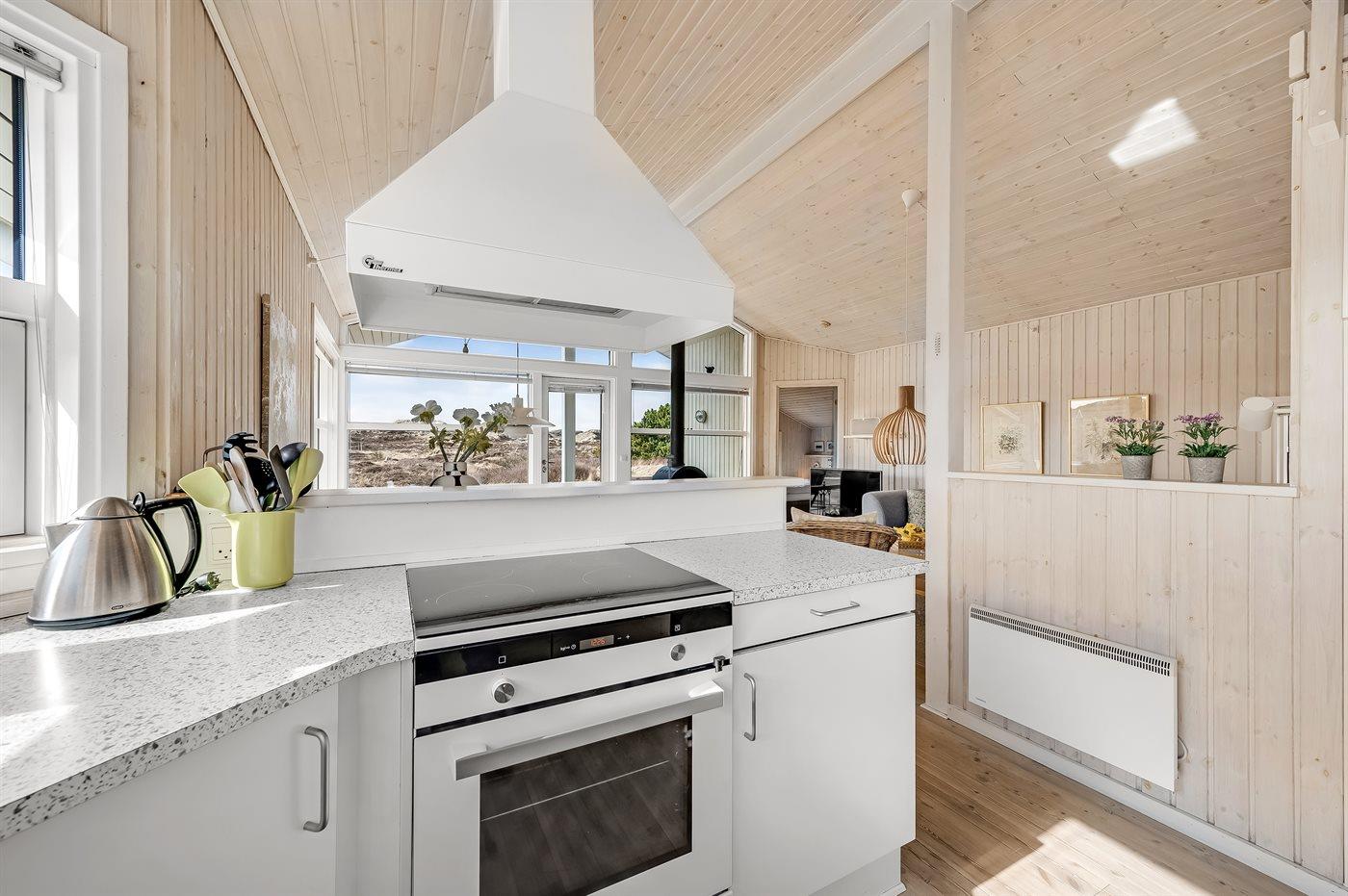 De keuken is uitgerust met koelkast Er is 4 elektrische kookplaten, bakoven, magnetron en vaatwasser.