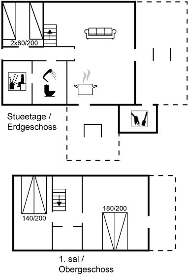 Er is 1 badkamer met douchehok en 1 toilet. De sauna biedt de gelegenheid tot ontspanning.