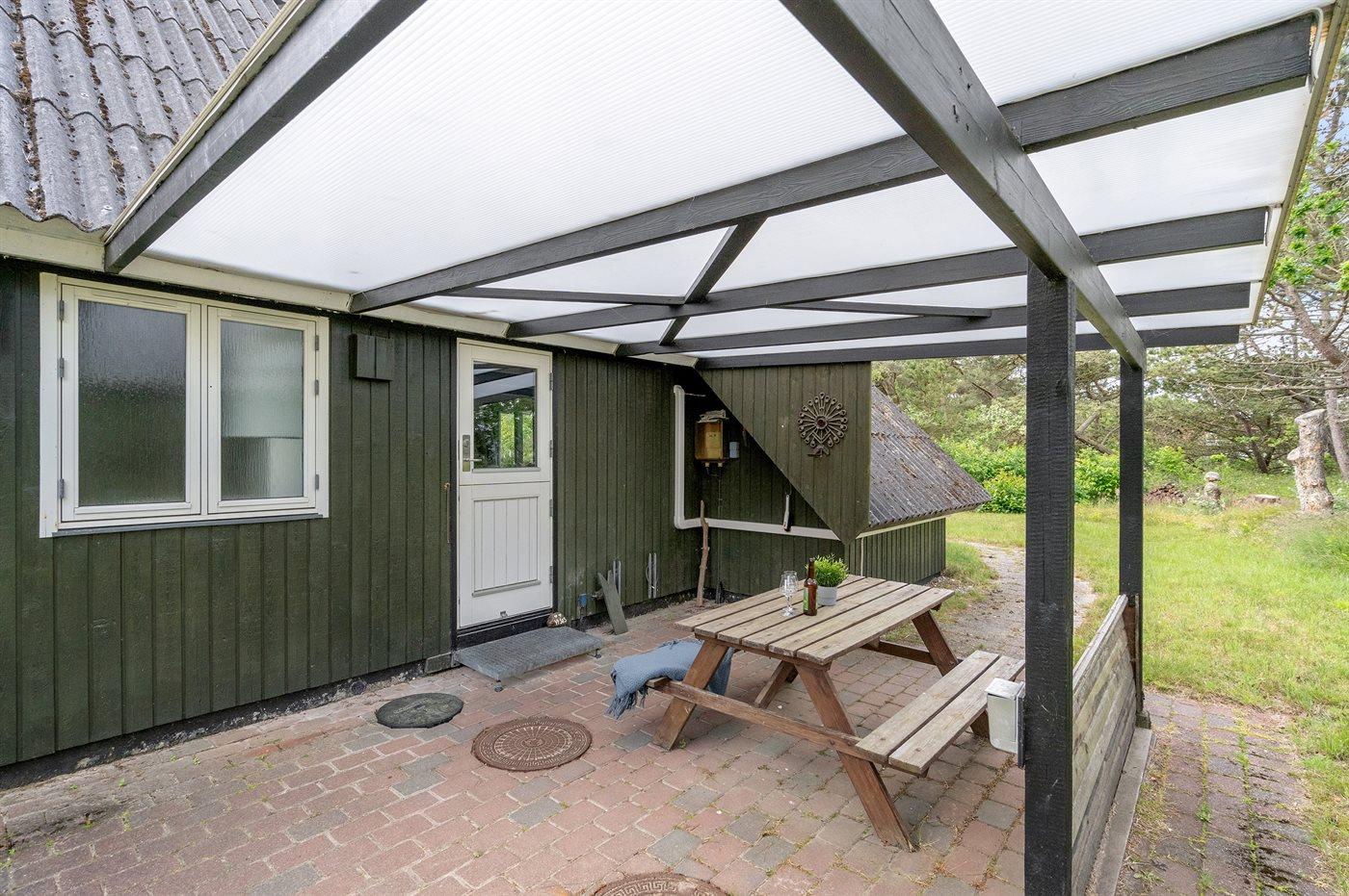 De vakantiewoning is gelegen op een 3000 m² groot natuural grond. Afstand tot de zee 1000 m. Dichtstbijzijnde winkel 1000 m. Het vakantiehuis heeft een gedeeltelijk omheind, overdekt terras. Gereedschapsruimte. Barbecue. Parkeerplaats bij het huis.