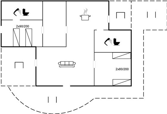 Er is 2 badkamers met douchehok en 2 toiletten. Er is vloerverwarming in 2 van de badkamers.