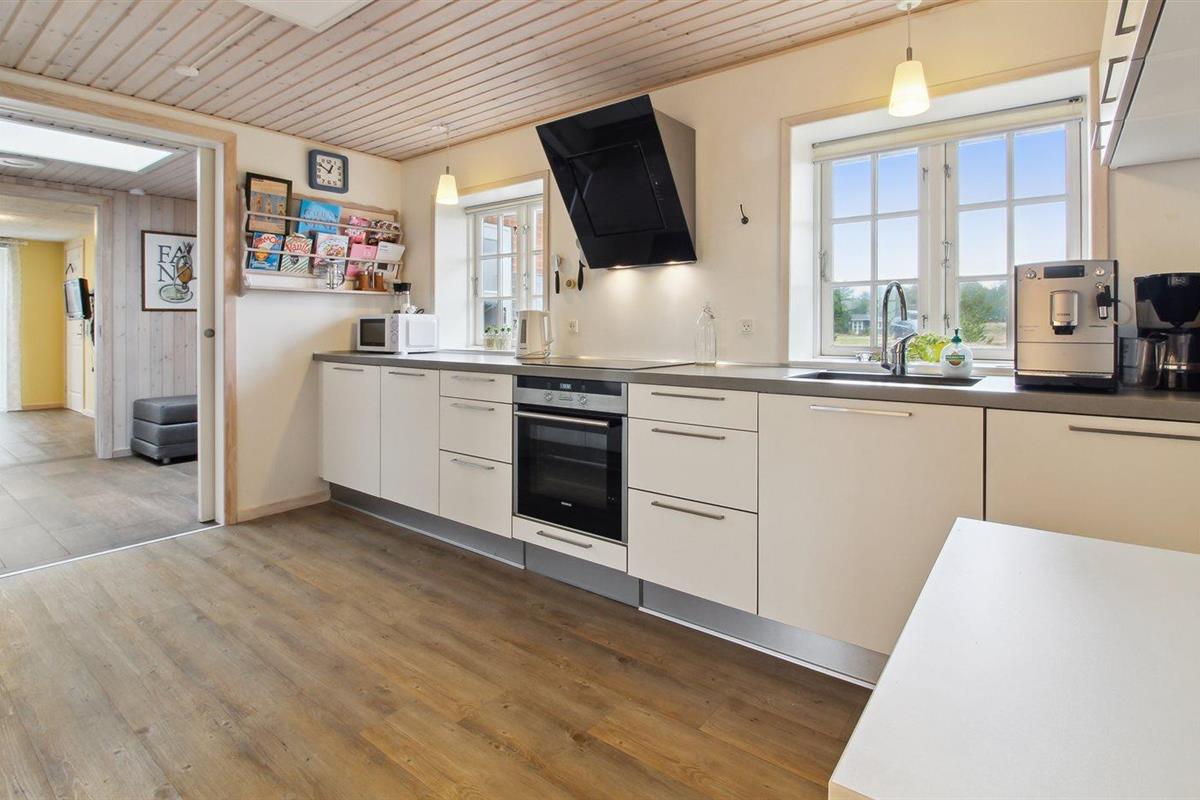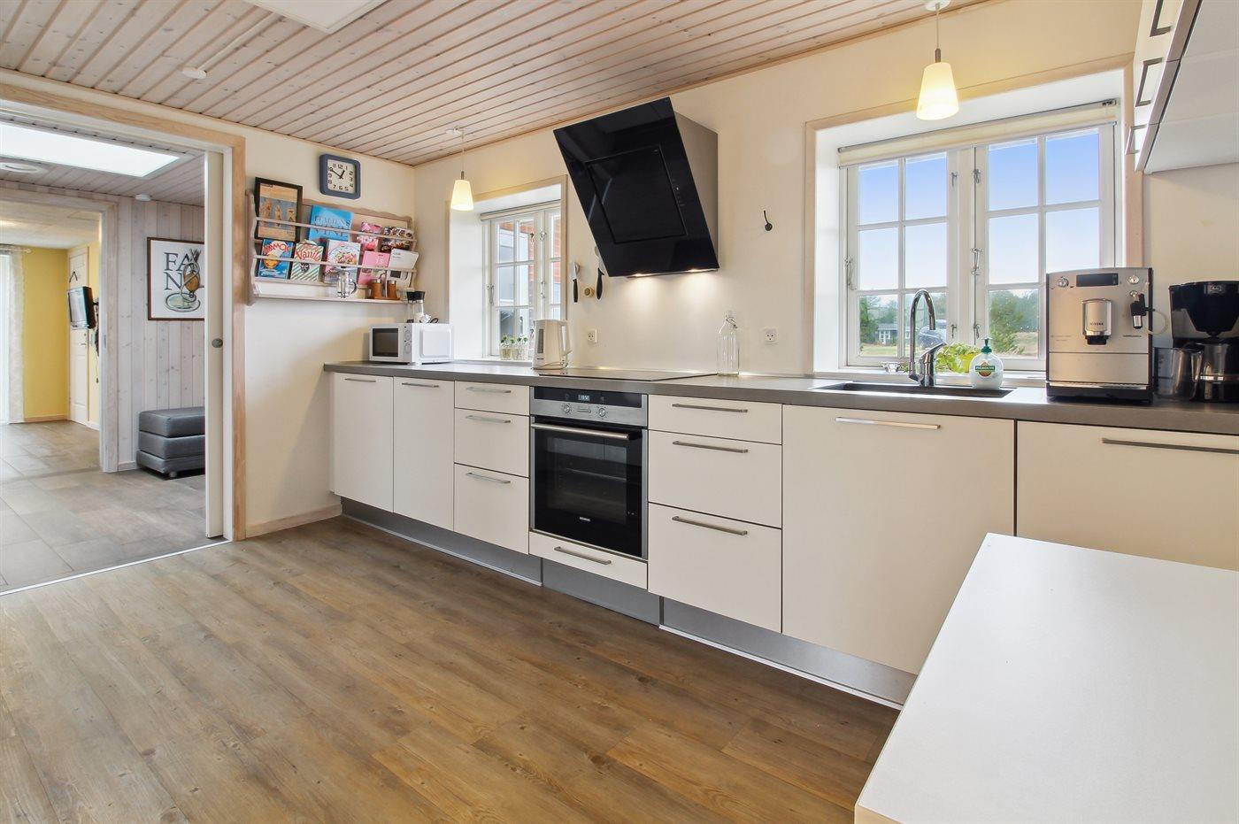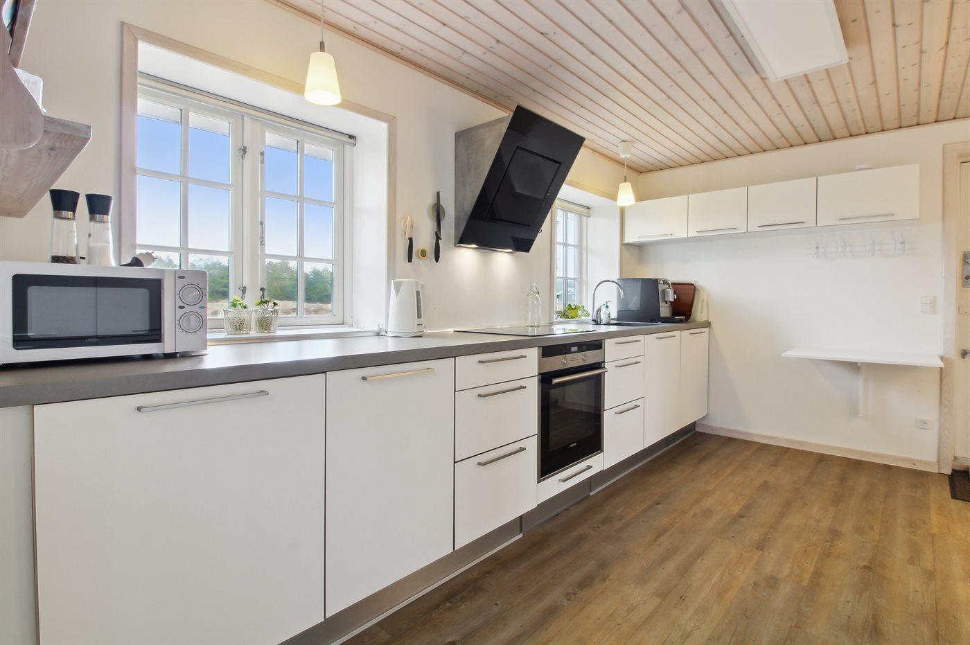 De keuken is uitgerust met koelkast Er is 4 inductiekookplaten, heteluchtoven, magnetron en vaatwasser.