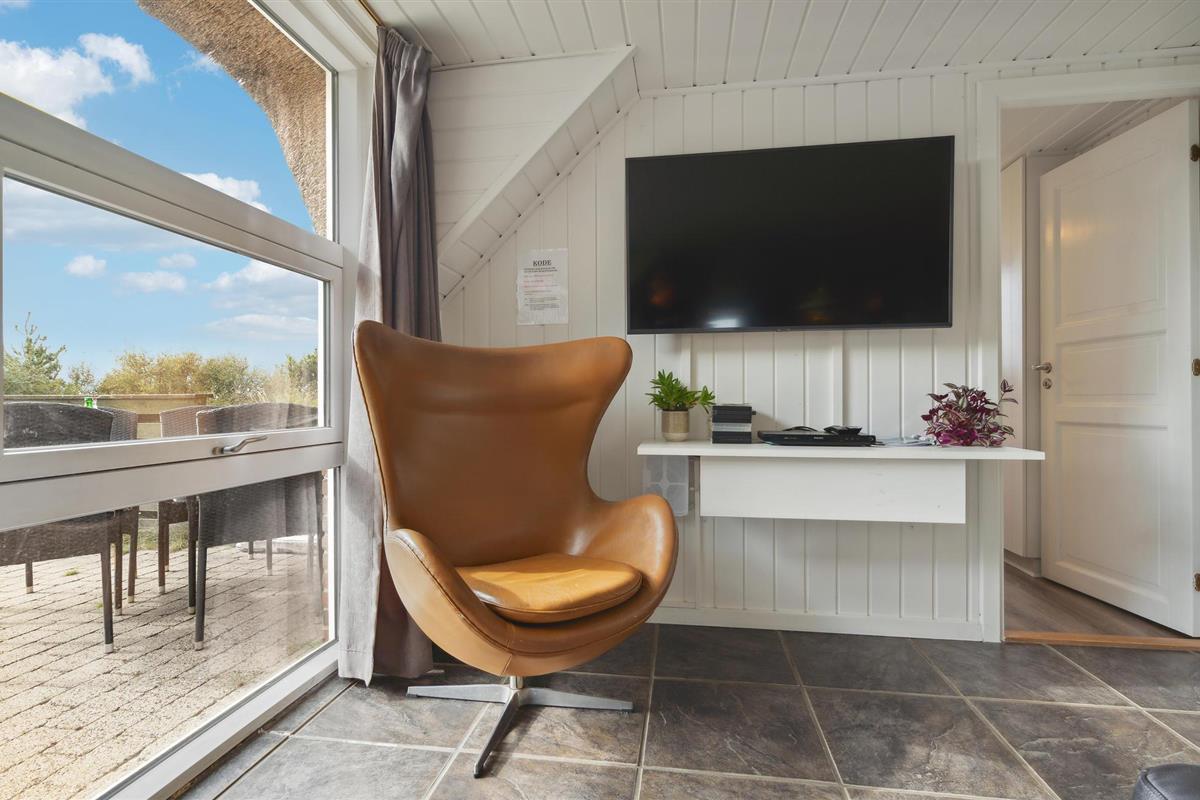 Het huis ligt op een verhoogde natuurlijke plek met uitzicht over het duinlandschap. Fanø is een eiland met trotse tradities, mooie oude huizen, een gastronomisch restaurant en veel zomeractiviteiten. Vliegeren op het strand of een ritje maken op een strandzeiler, een voertuig dat door de wind over het zand wordt voortbewogen.