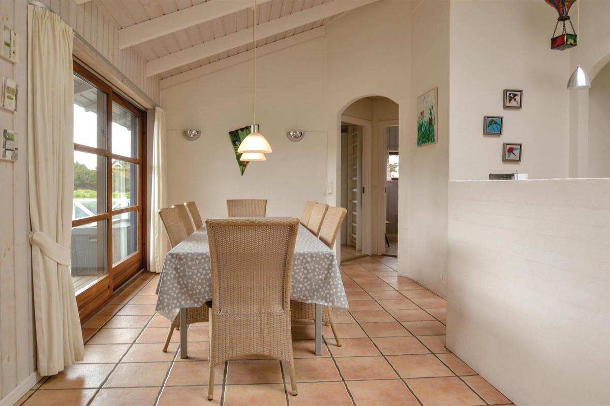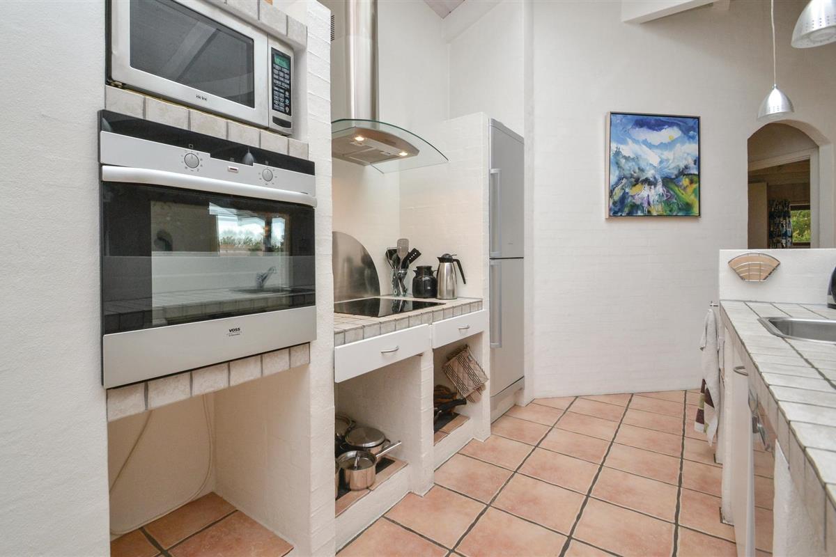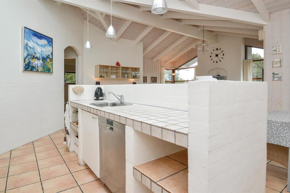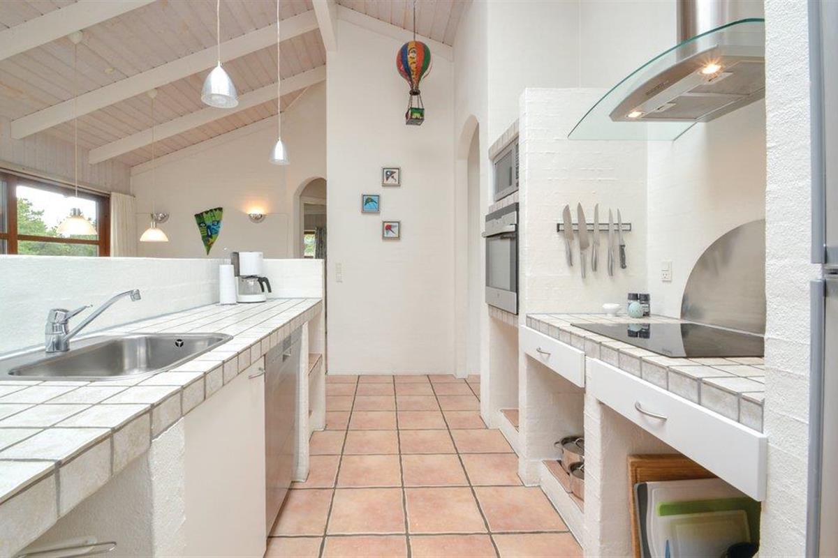 Dit onder architectuur gebouwde huis in Sønderho maakt indruk met een grote houtkachel. De indrukwekkende glaspartijen zorgen voor een prachtige hoeveelheid licht en benadrukken de goed doordachte details van het huis. De kamerindeling is geoptimaliseerd. De slaapgedeeltes bevinden zich in aparte vleugels van het huis, aangevuld met twee aantrekkelijke badkamers. Daarnaast biedt het huis een indrukwekkende entree met voldoende ruimte voor je garderobe en een uitnodigende en goed uitgeruste keuken, die in open verbinding staat met de woonkamer. Hier vind je een gezellige eethoek met directe toegang tot het terras op het westen via grote schuifdeuren. Geniet hier met het gezin van de lange, zwoele zomeravonden.